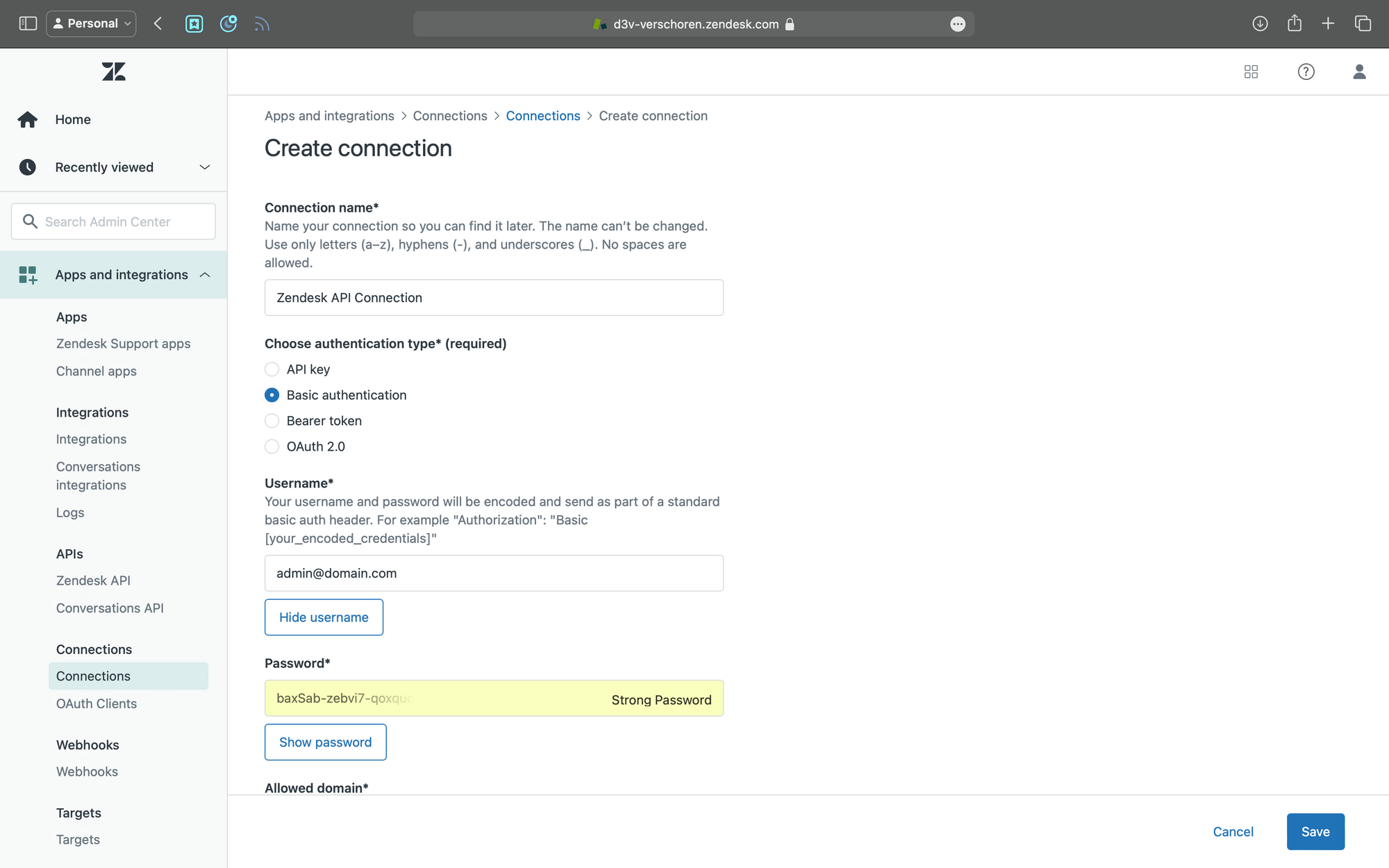 Go to the Admin Center > Apps and Integrations > Connections and add a new connection.
