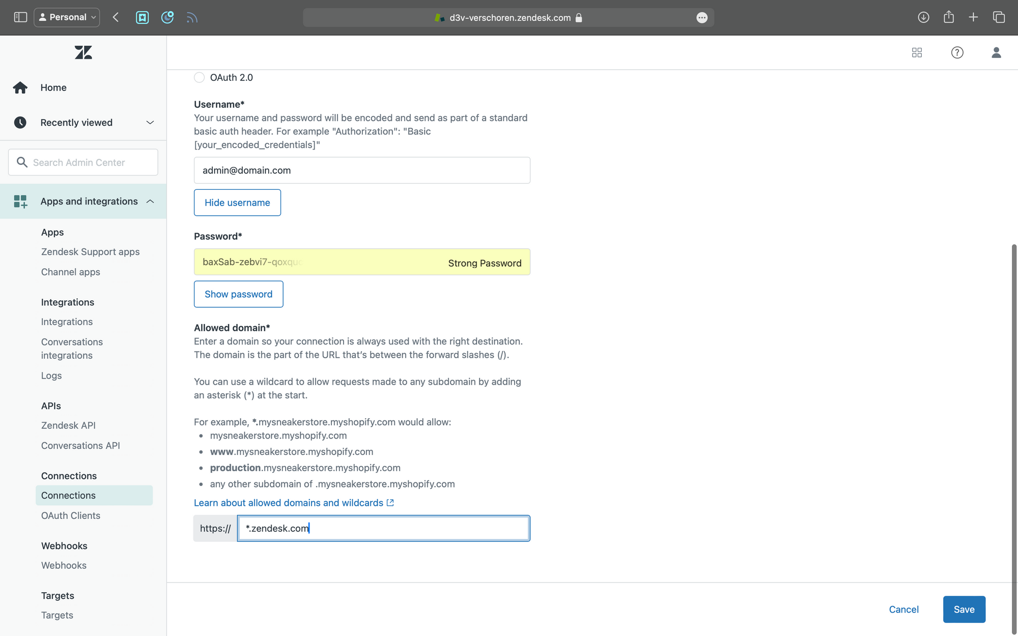 https://*.zendesk.com(Since the call is made from a Zendesk proxy it has to be a wildcard)