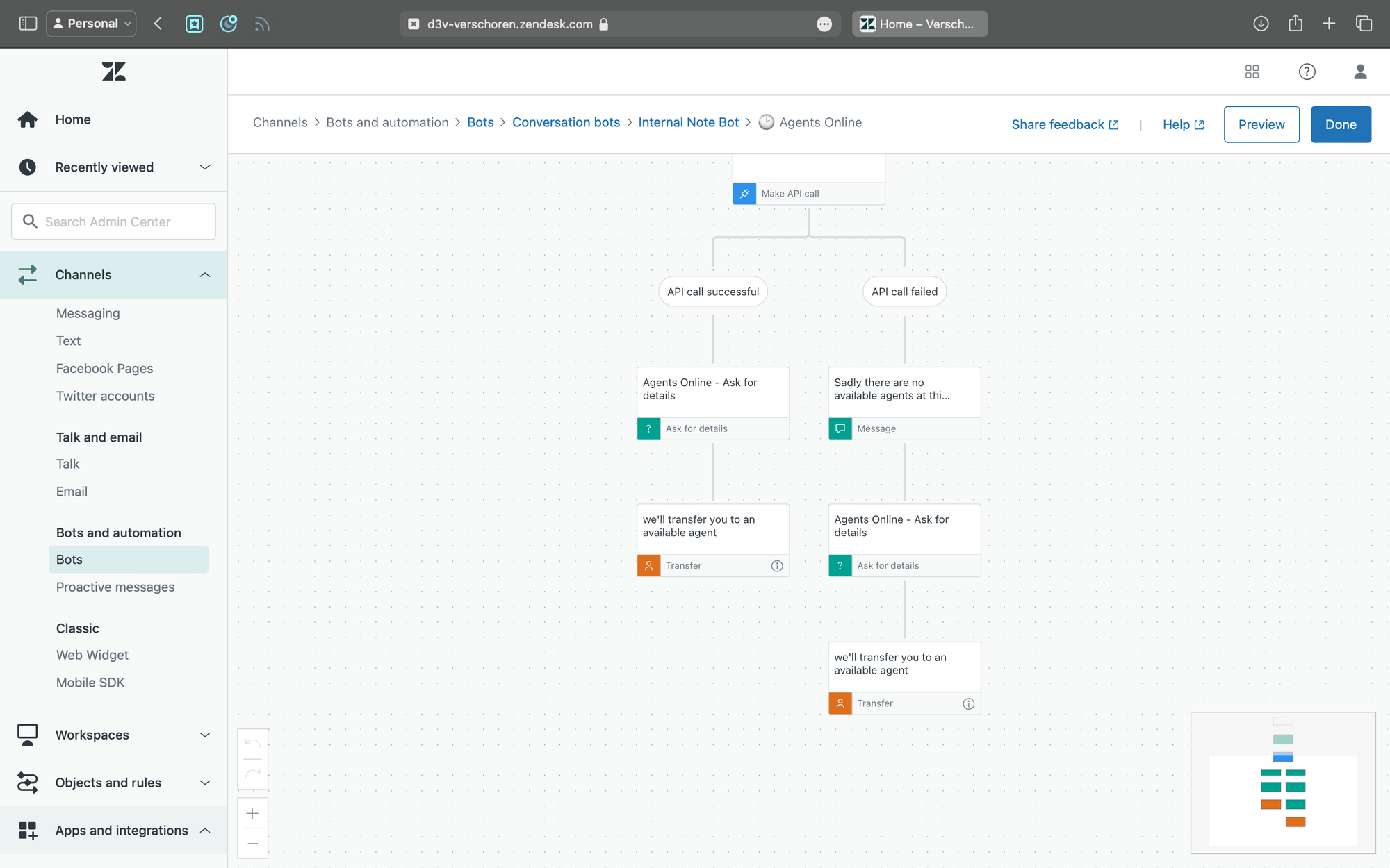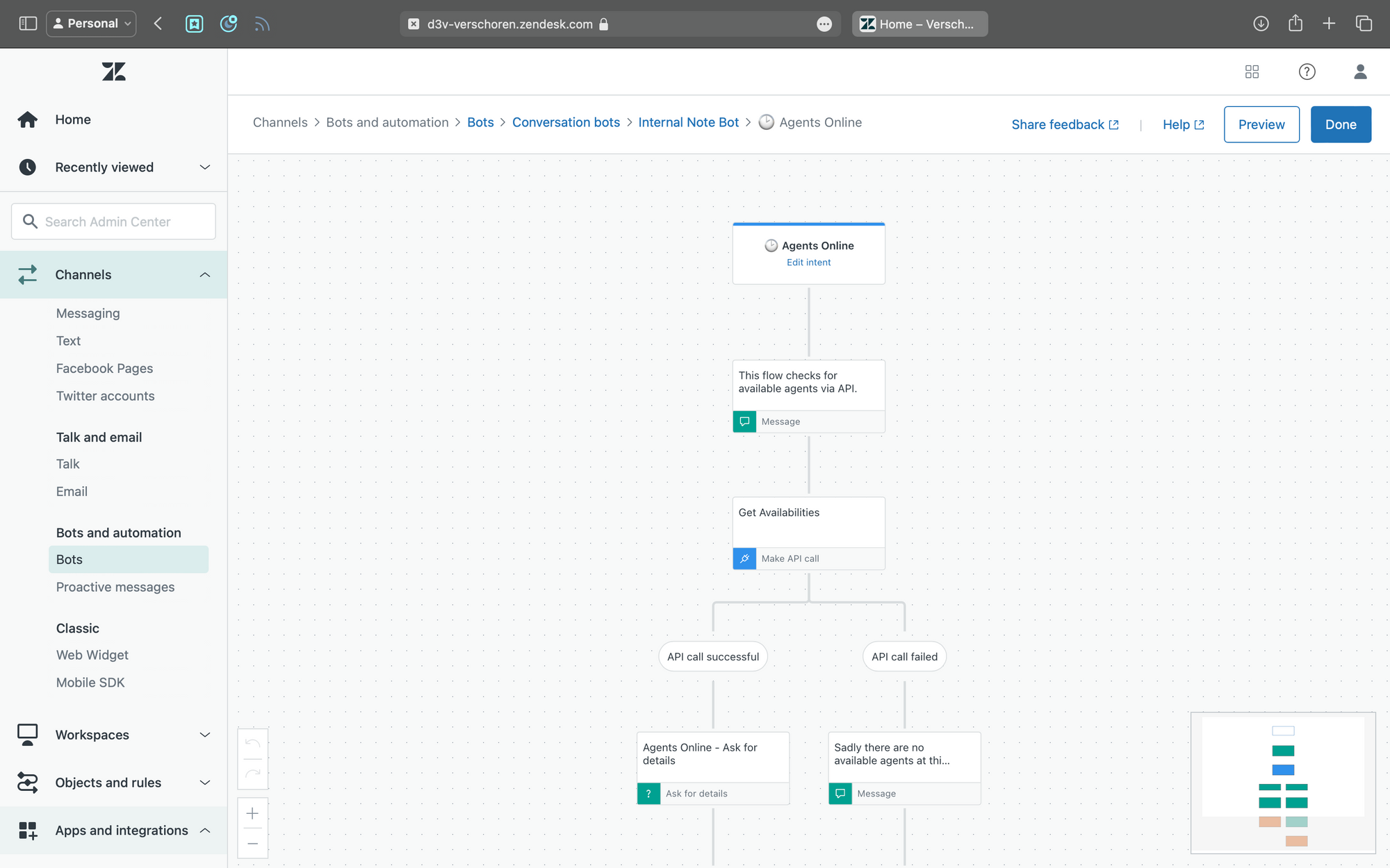 - Go to Admin Center > Channels > Bots > Zendesk Bot