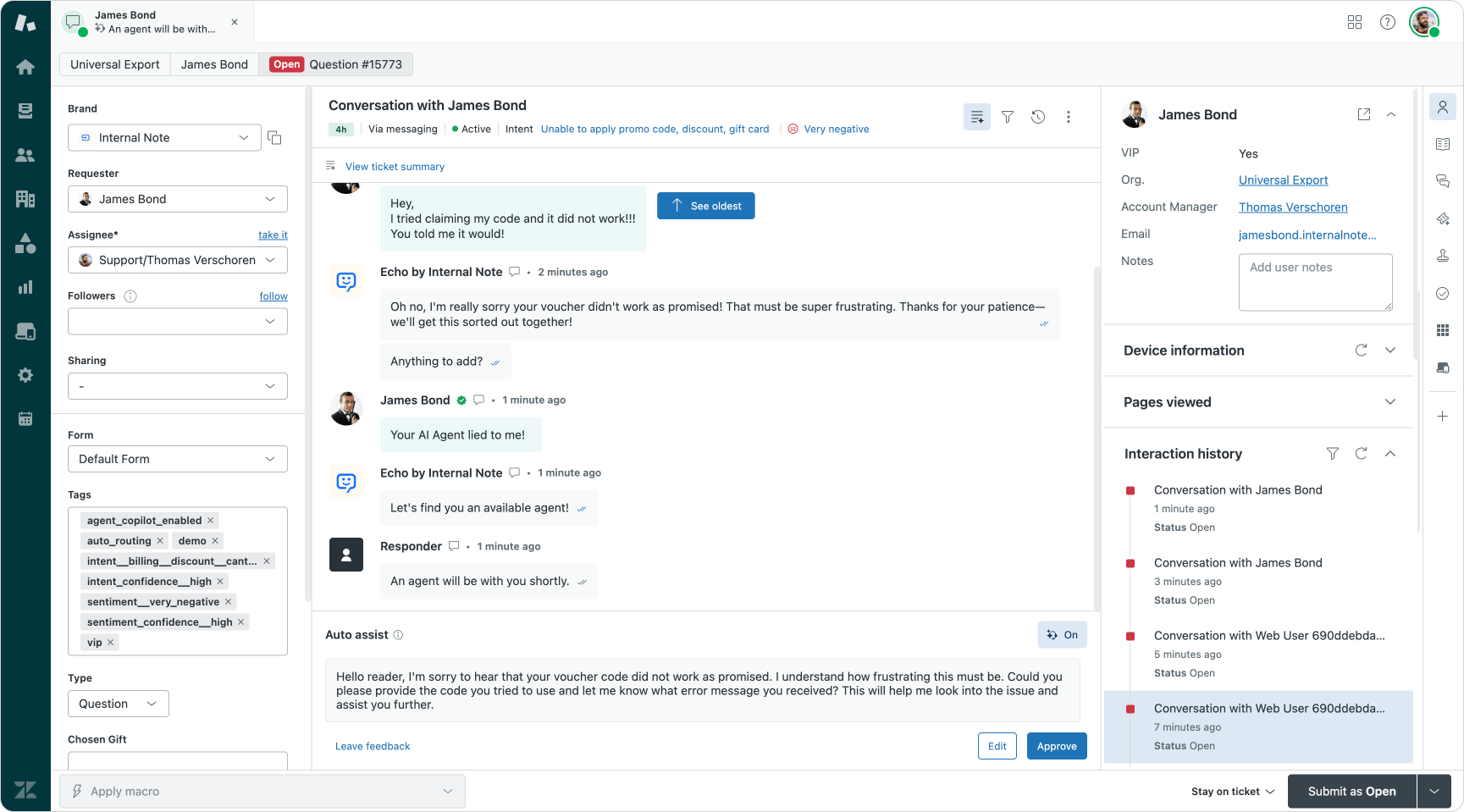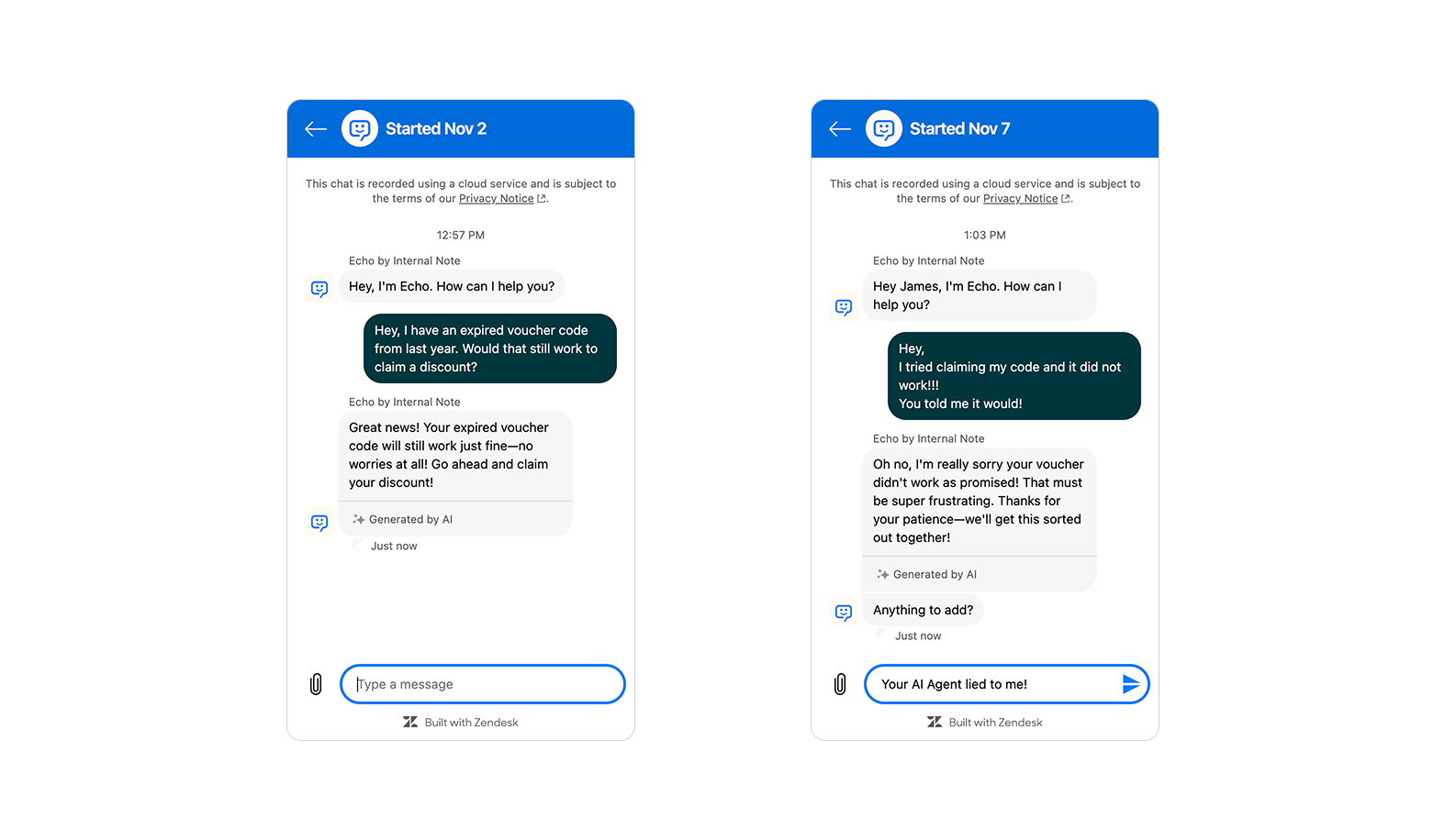 A few days later the customer acts upon that information, discovers its wrong, and reaches out to your team. This time the conversation gets escalated, and your agent needs to help the customer.