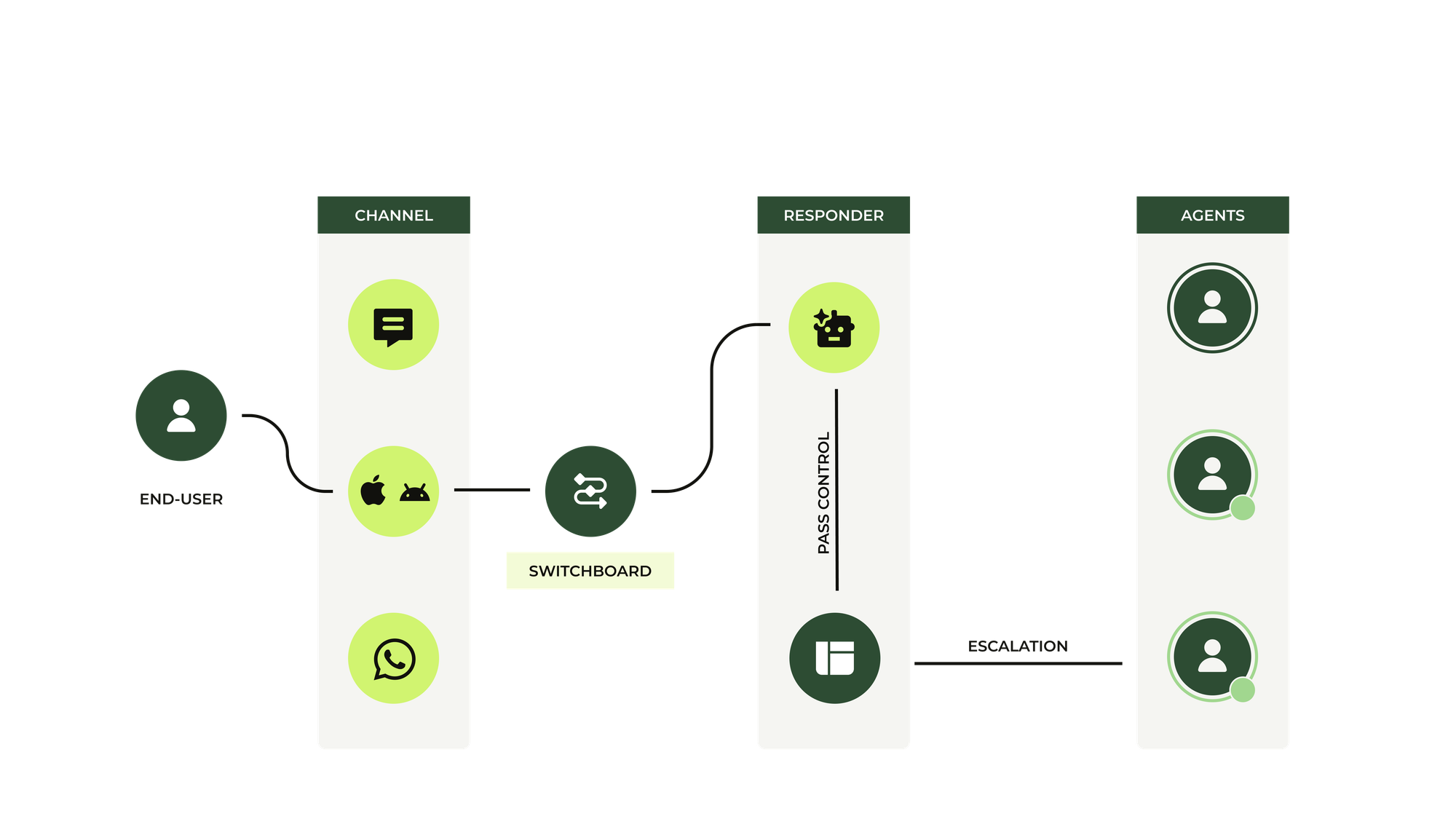 As a refresher, the SunCo Switchboard is the underlying element that handles the routing of incoming Messaging conversations. Every new interaction creates a new conversation that is routed to the default responder, in many cases an AI Agent.