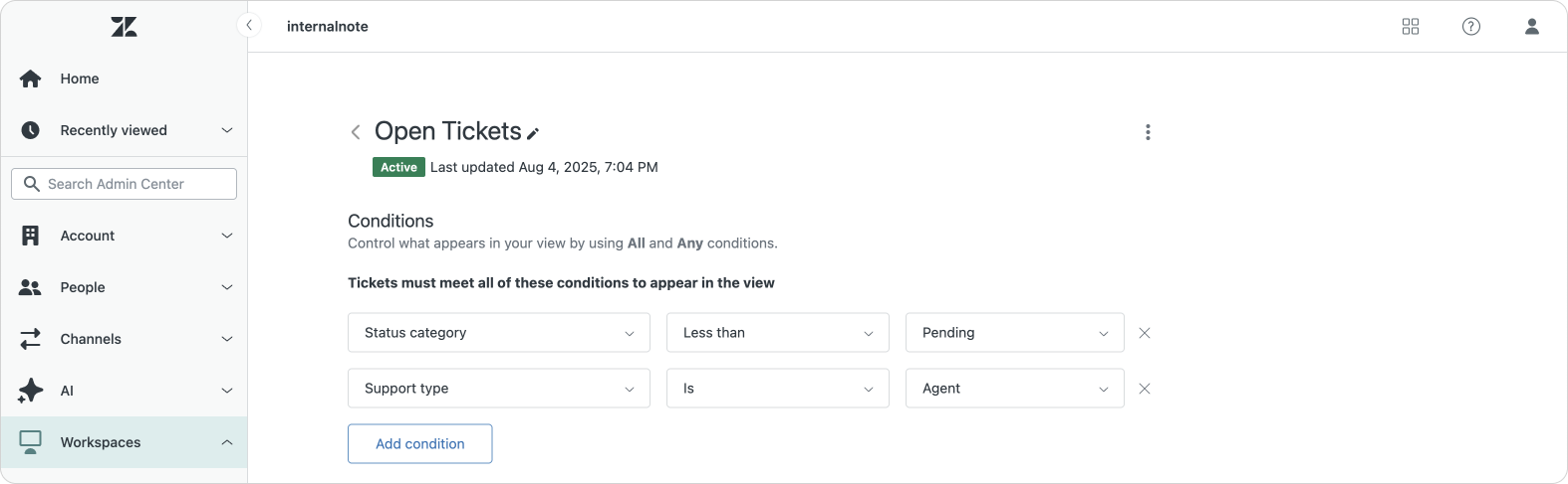 For teams still using Views, it’s worth double-checking your filters. Make sure they include a condition to only show tickets where the support type is Agent, keeping your lists clean and focused on human-assigned work.