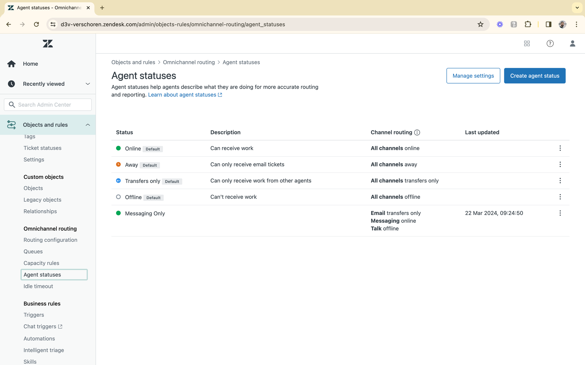 We can add additional statuses. You can for example add a "Messaging only" status, which only allows for conversations. Or a "Phone only" which indicates that this agent will only accept phone calls.