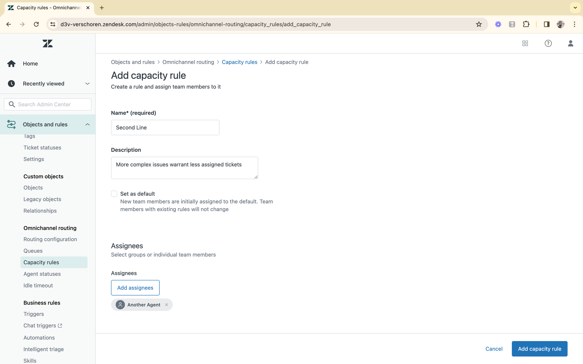 But my rule set for Second line agents, who handle more complex tasks, only allows for 2 email tickets and one 1 messaging conversation due to the longer resolve time and additional focus needed for their tickets.