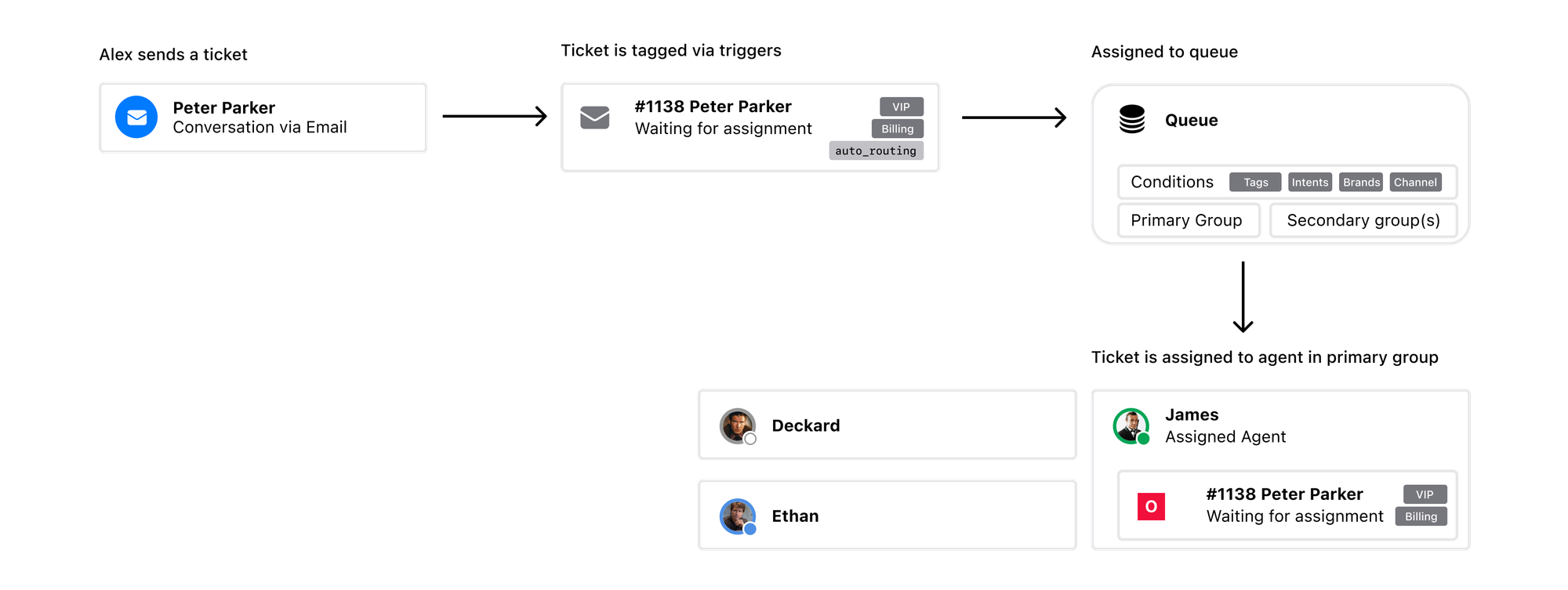 Ticket queues take this approach one step further by moving ticket assignment from triggers and group towards queues that route tickets to one or more groups based on a set of criteria. Once routed, tickets then get assigned to an agent in that group.