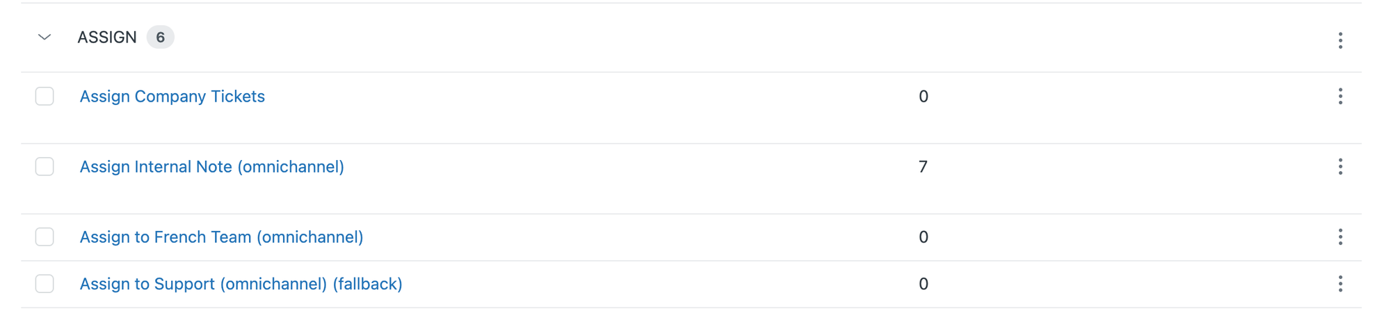 All other tickets are also assigned to their respective groups, but will be automatically routed and assigned to an available agent. Tickets about Internal Note are assigned to the Support group, and get the auto_routing tag. I also have a trigger that assigns French tickets to a Support - French group. For now, I keep that trigger as is, but also add the auto_routing tag so that these tickets to are assigned to available agents.