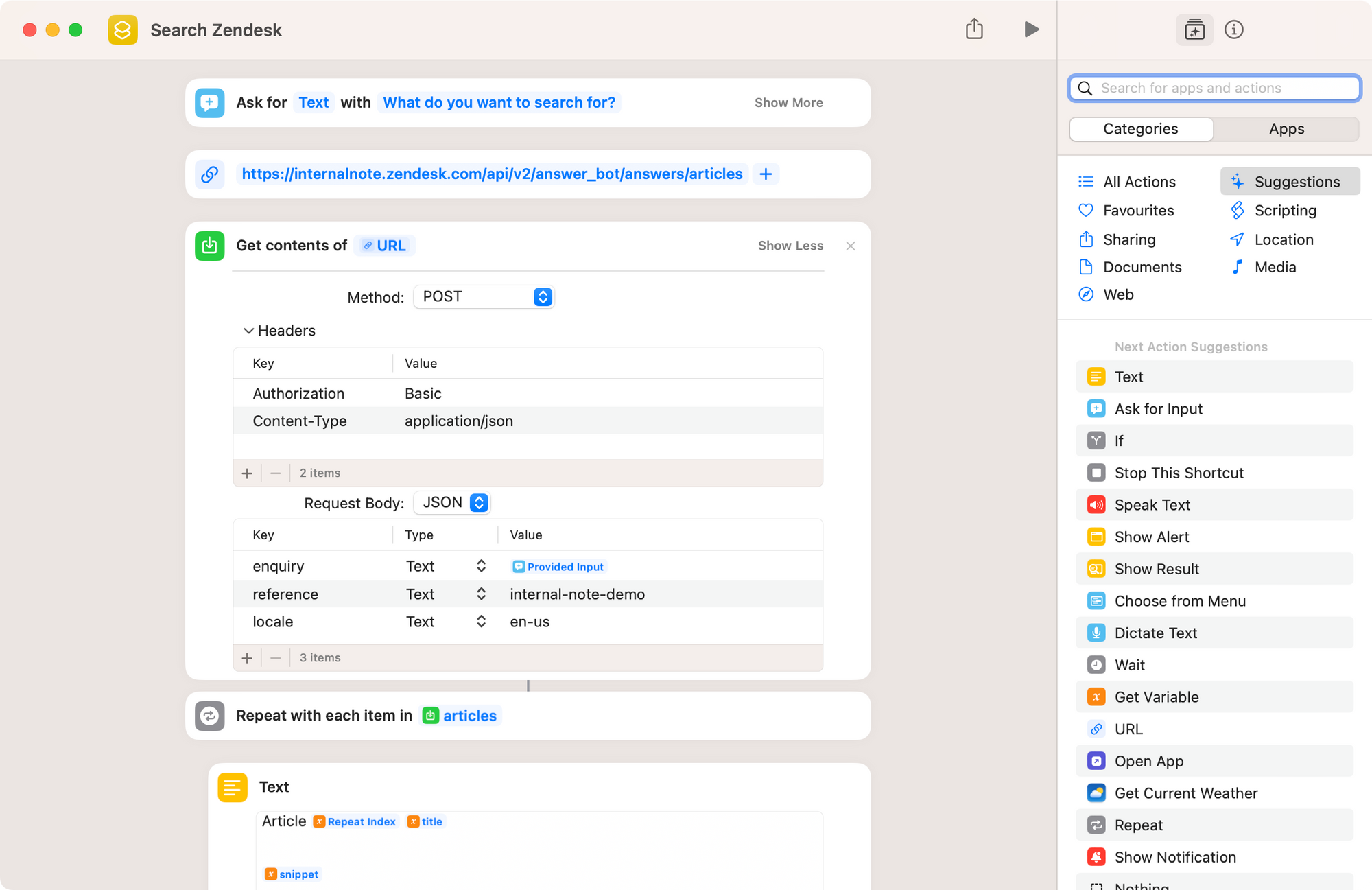 internalnote.zendesk.comwith your Zendesk domain in the Get Contents of URL step.