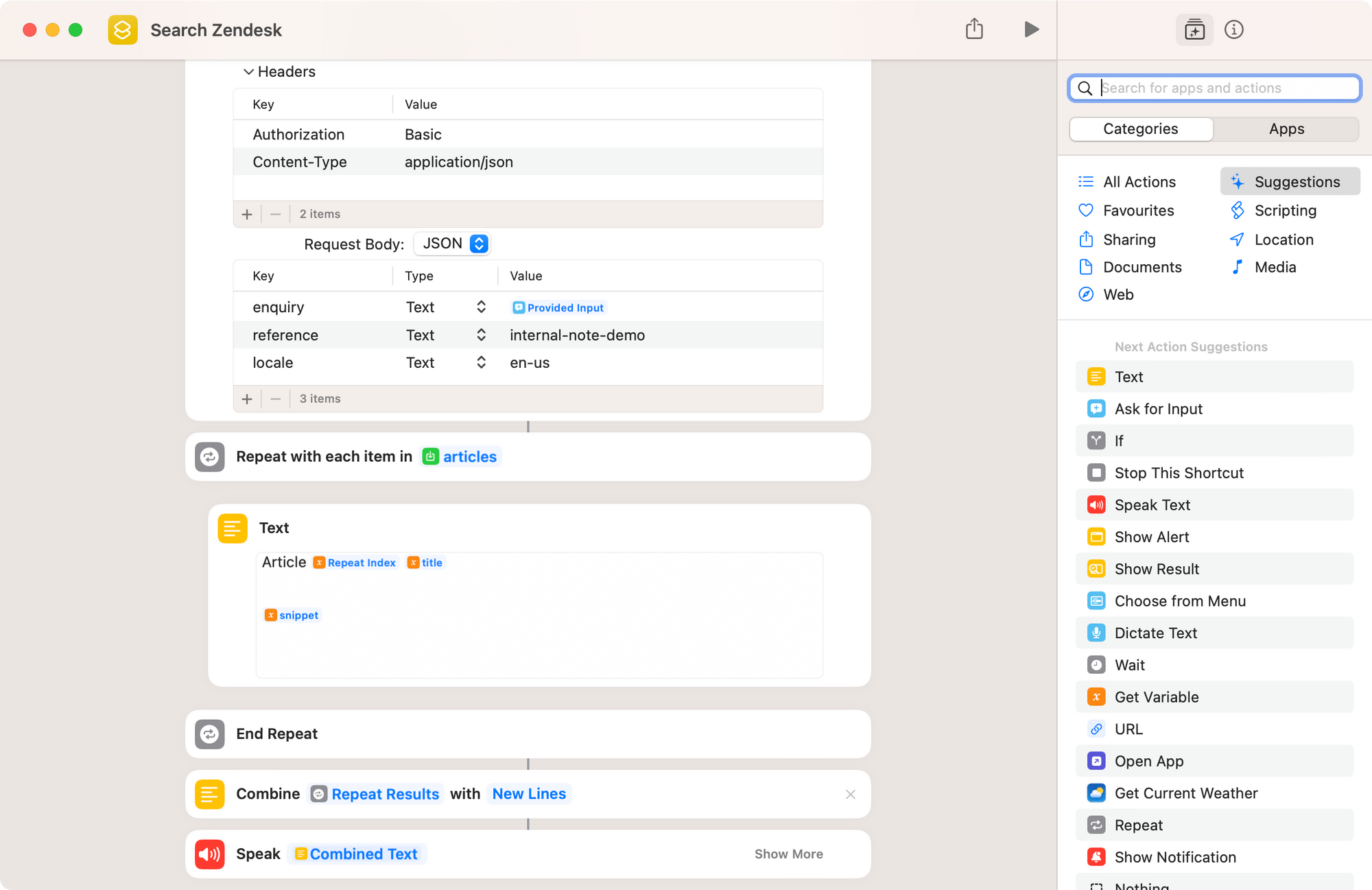 [email protected]/token:zendesktokenin the Get Contents of URL step - Replace