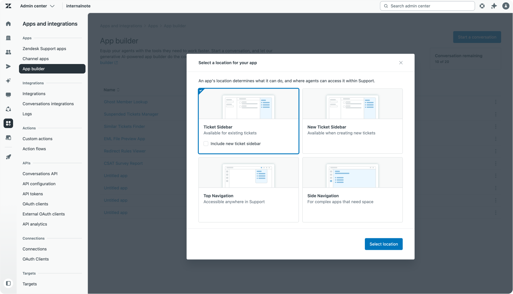 A key enhancement is the option to create different app types: ticket sidebar apps, full-size navigation bar apps, or popup apps that live in the toolbar.