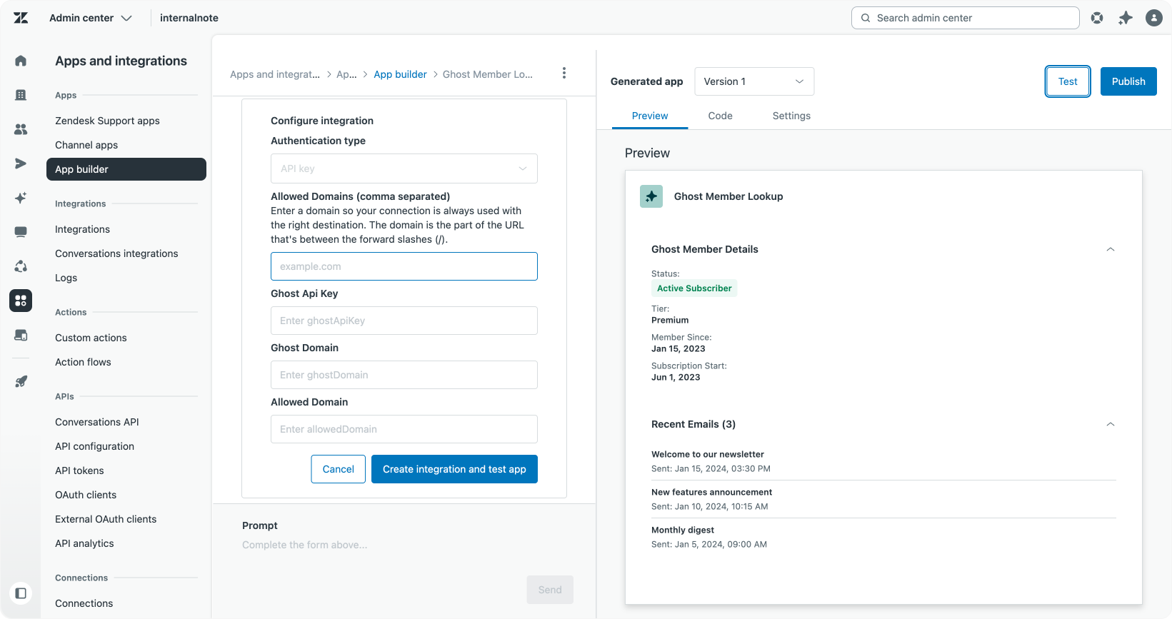 Finally, this app goes a step further by connecting Zendesk with an external blogging platform, Ghost, to manage email subscriptions.