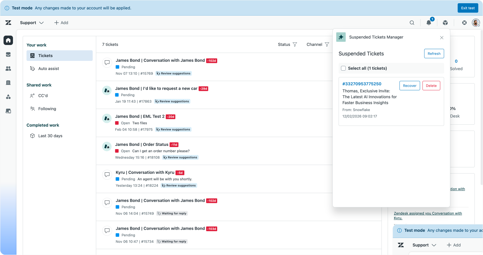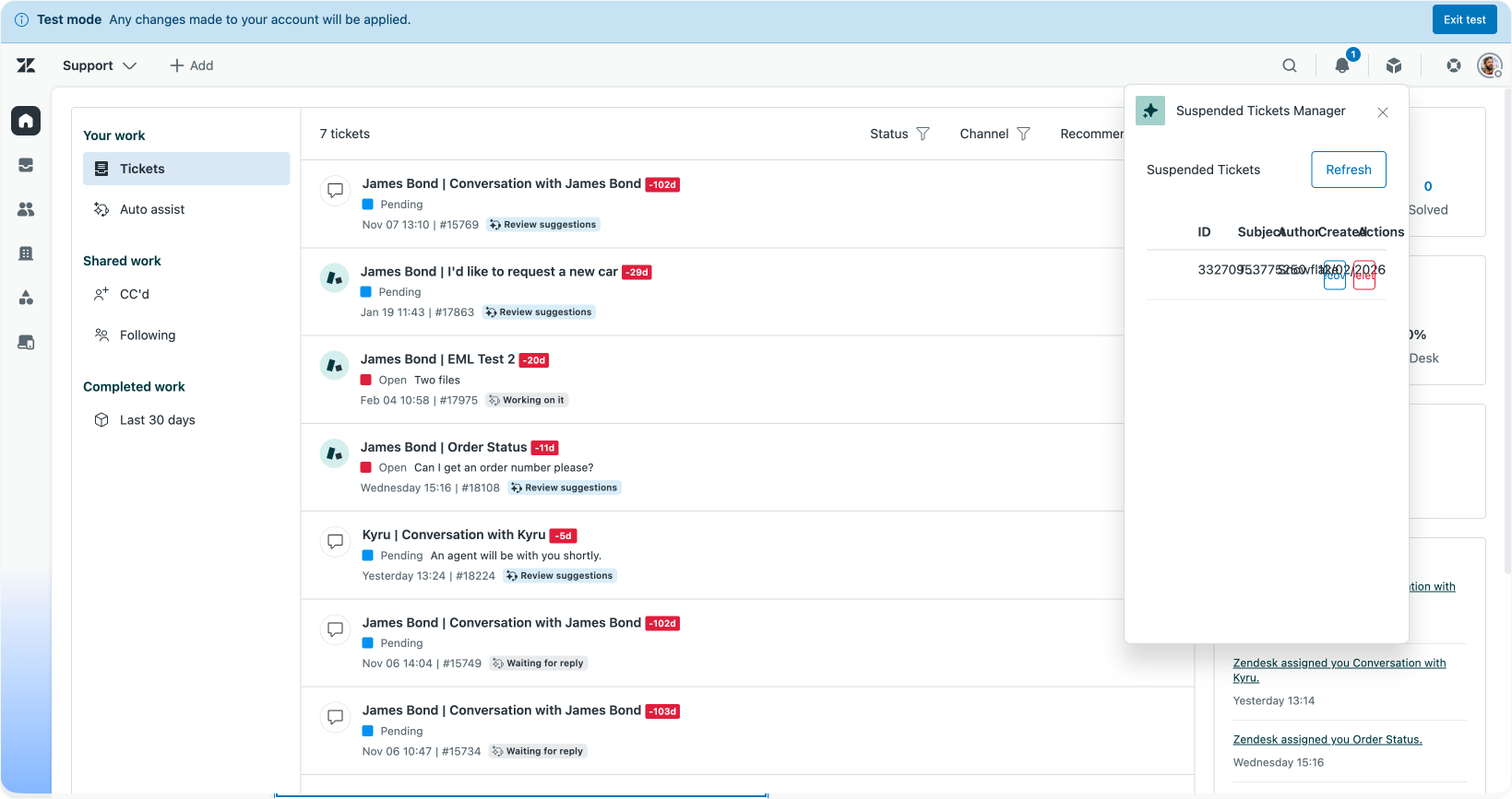I'd like to build an app that shows the last 10 suspended tickets. Agents with the right permissions can quickly RECOVER/DELETE the tickets. We should be able to also do this in bulk.