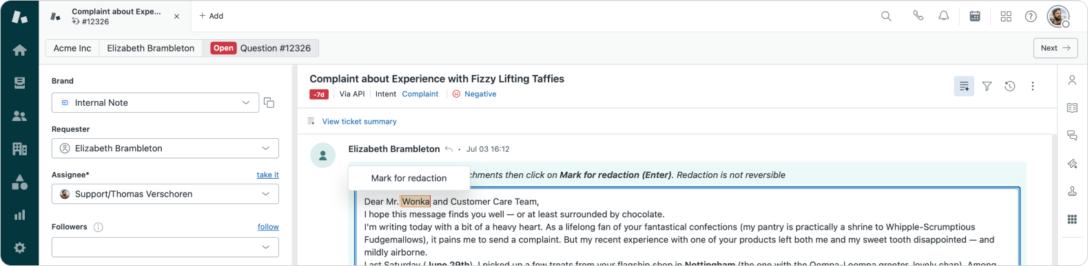 Right now, redaction actions are limited to standard triggers—but I’d love to see the same capability extended to automations. Being able to run a scheduled sweep of older (closed) tickets and automatically remove sensitive data after, say, 30 days feels like smart housekeeping.