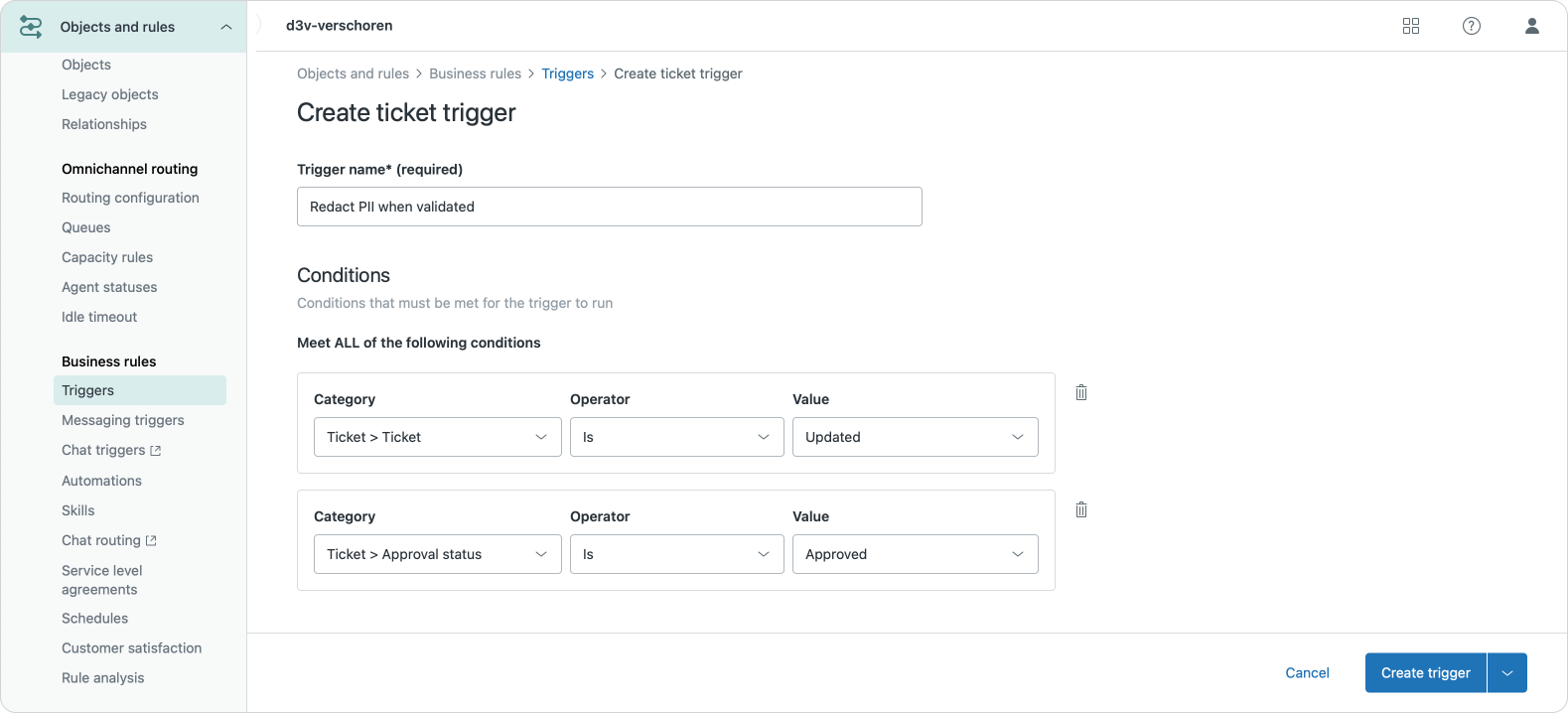 And that's what the example trigger below does. It looks for tickets that got approved, and then redacts info like address, bank account number and date of birth.