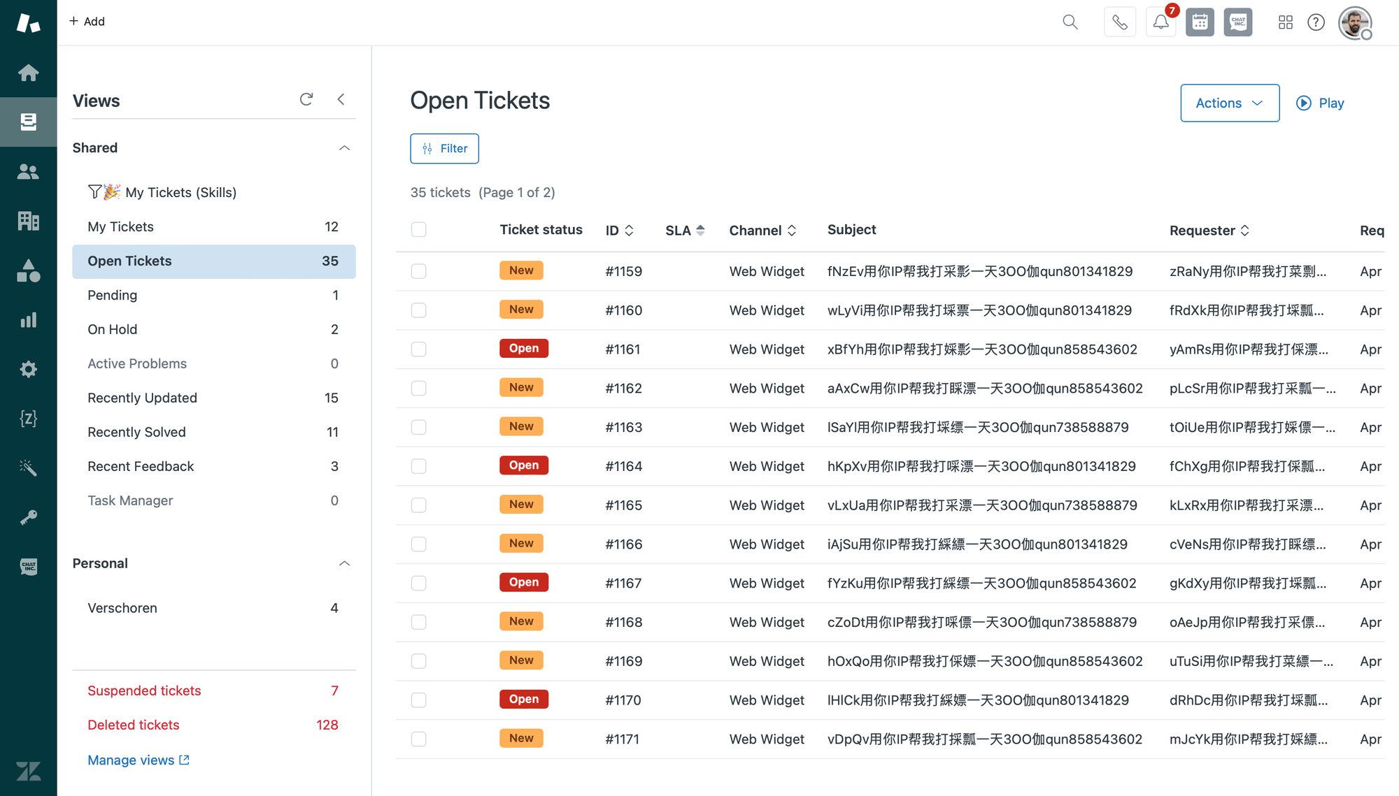 For anyone using Zendesk in the last few days, the image below will be very familiar. All of the sudden your inbox gets flooded with spam tickets. They seem to originate from the web widget channel and contain Chinese characters.