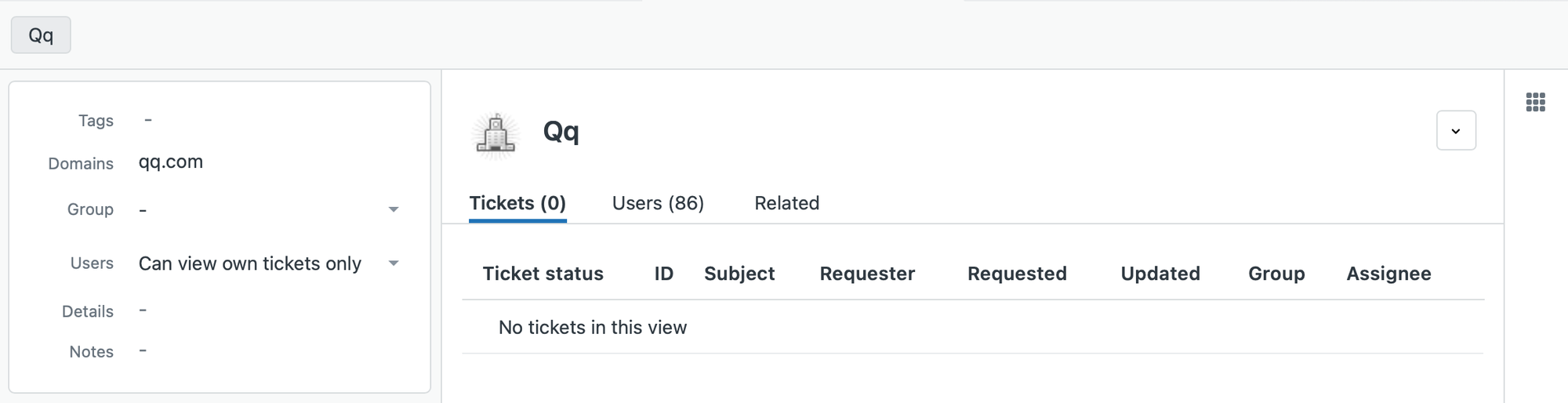 First I created an organization QQ that has a linked domain qq.com, since that's used by most of these requesters.