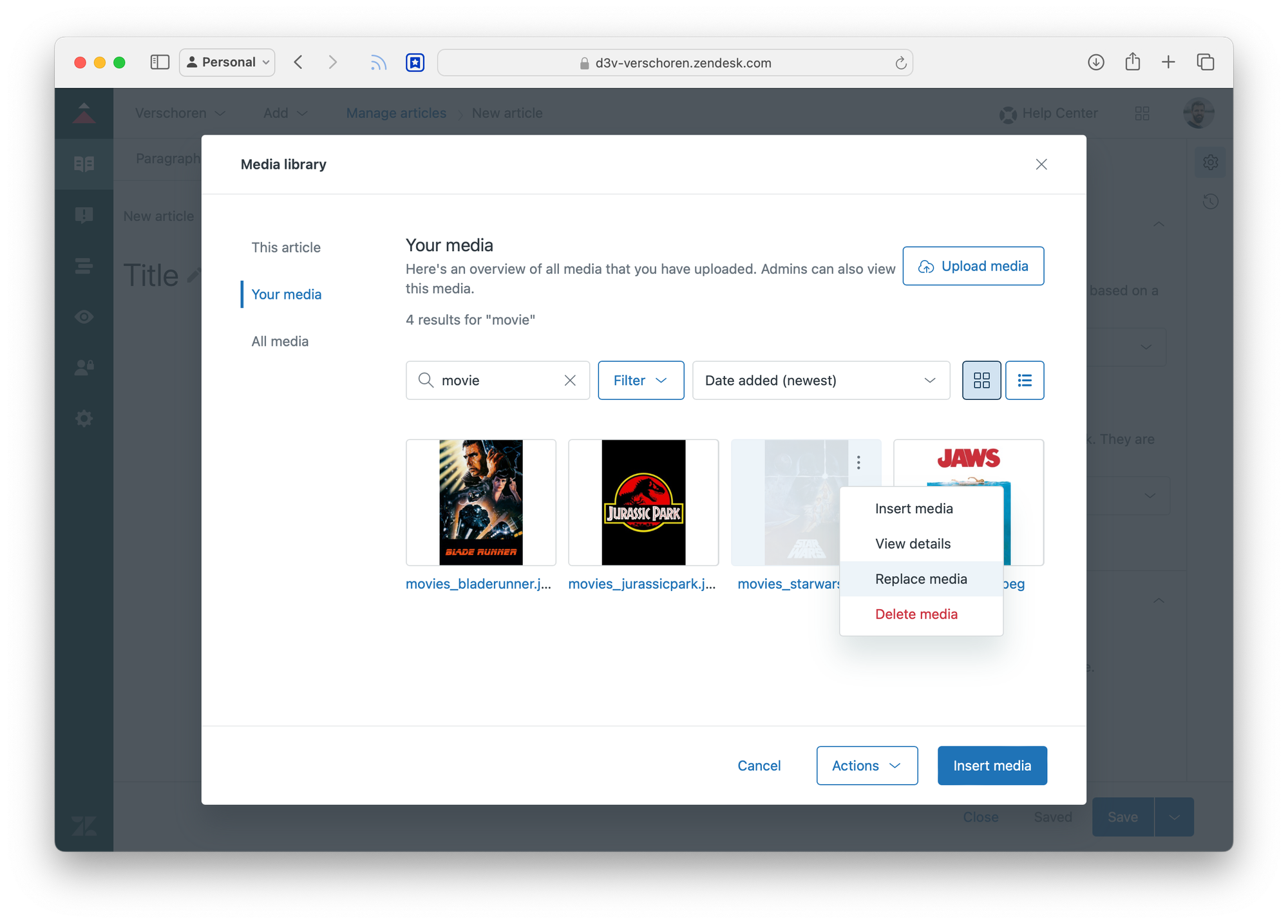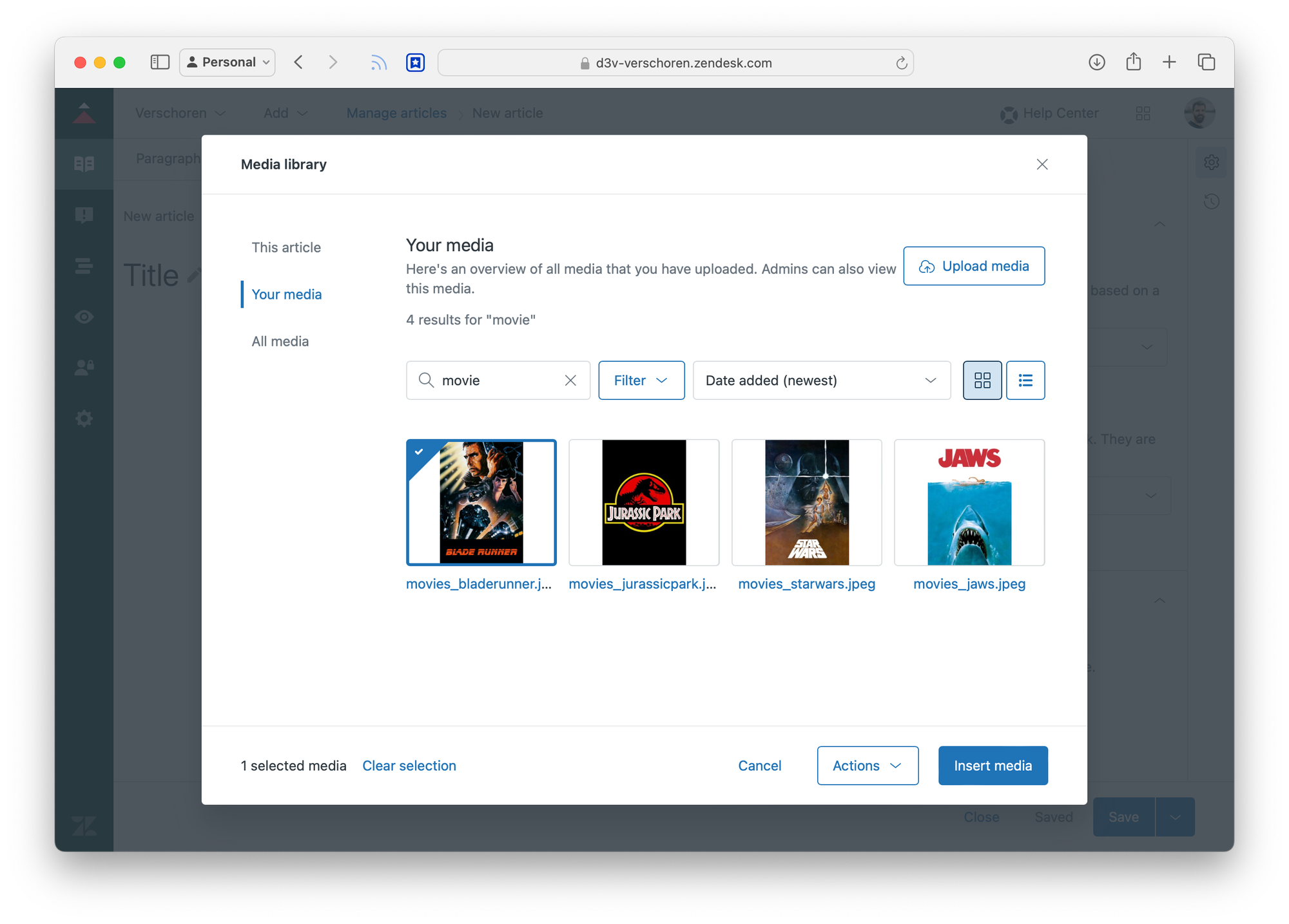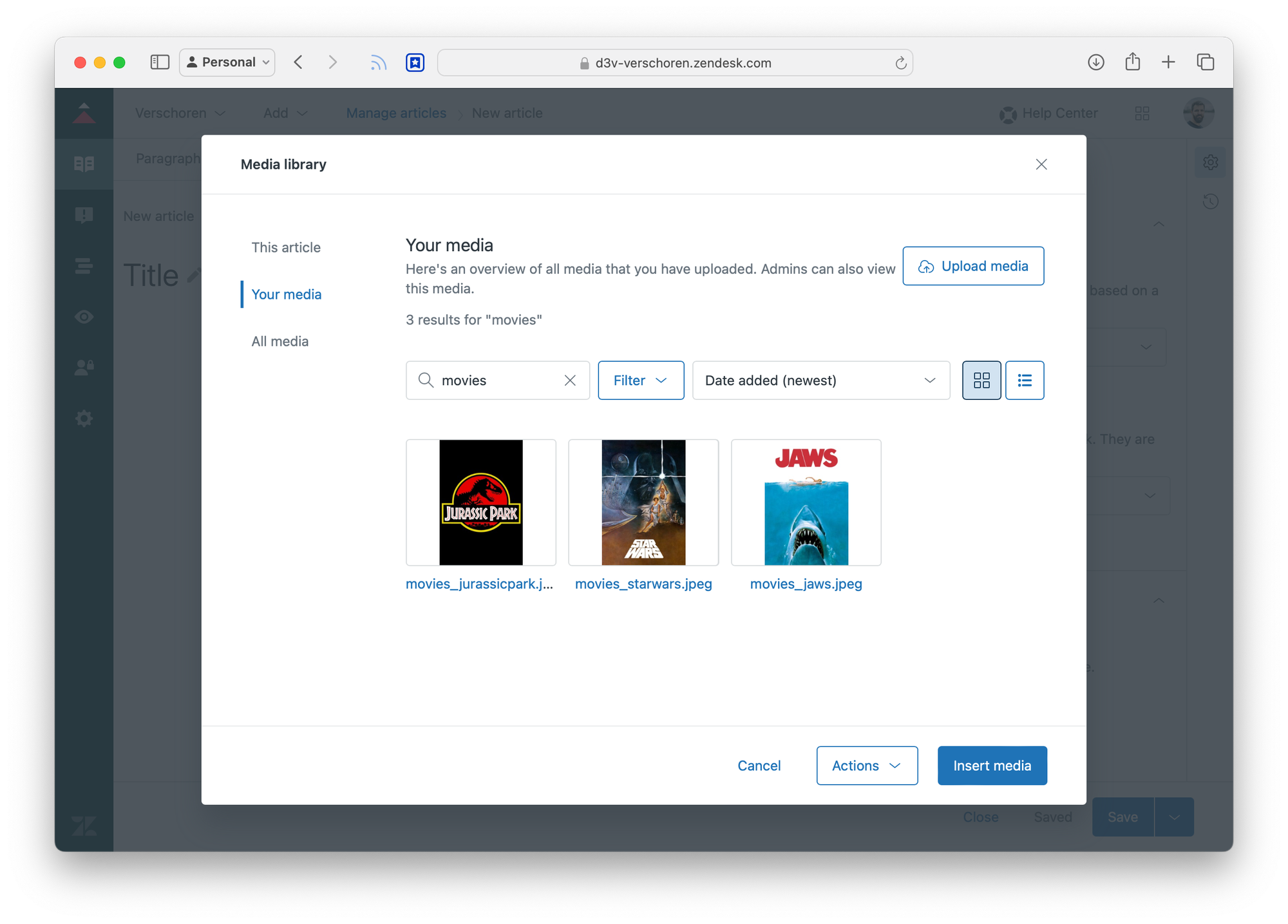 This new Media library is great, but there are scenarios where going into Zendesk and uploading your attachments is not very handy. In bigger companies it's often the marketing team that creates the perfect screenshots that can be used by the writers team in their articles.