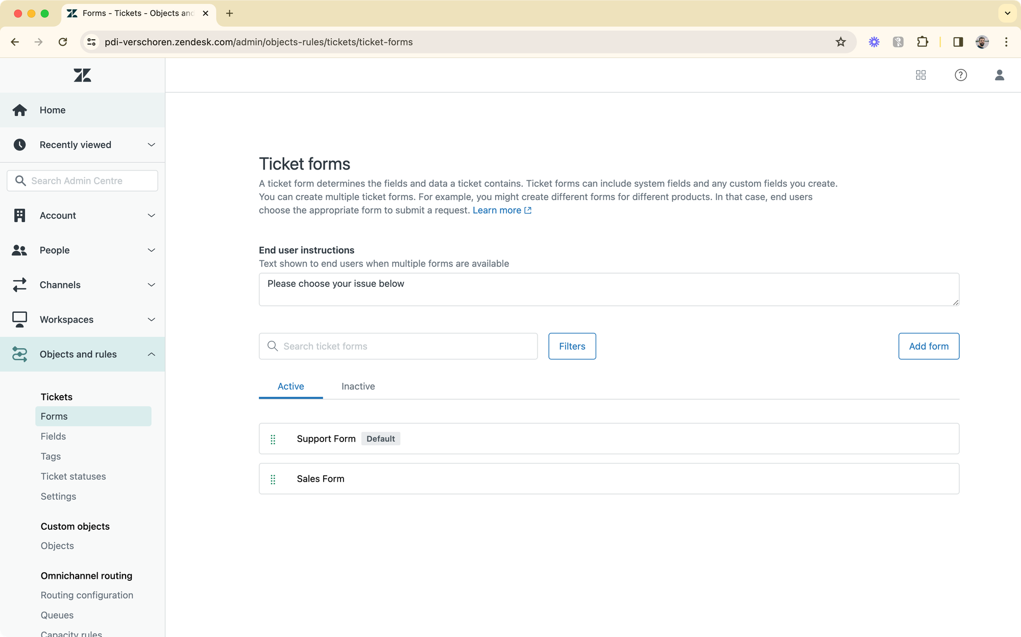 We have a Zendesk environment with two forms: a Support Form and a Sales Form. There's two corresponding groups of Agents: Support Team and Sales Team.