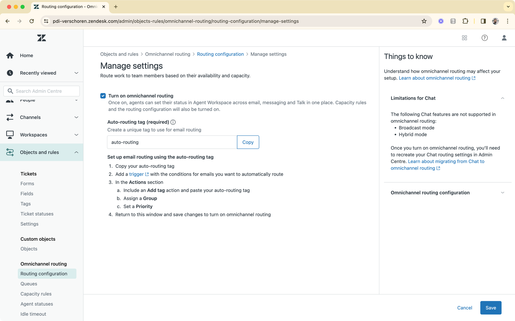 We also setup Omnichannel Routing with an auto-routing tag, and we've configured agent statuses and capacity rules.
