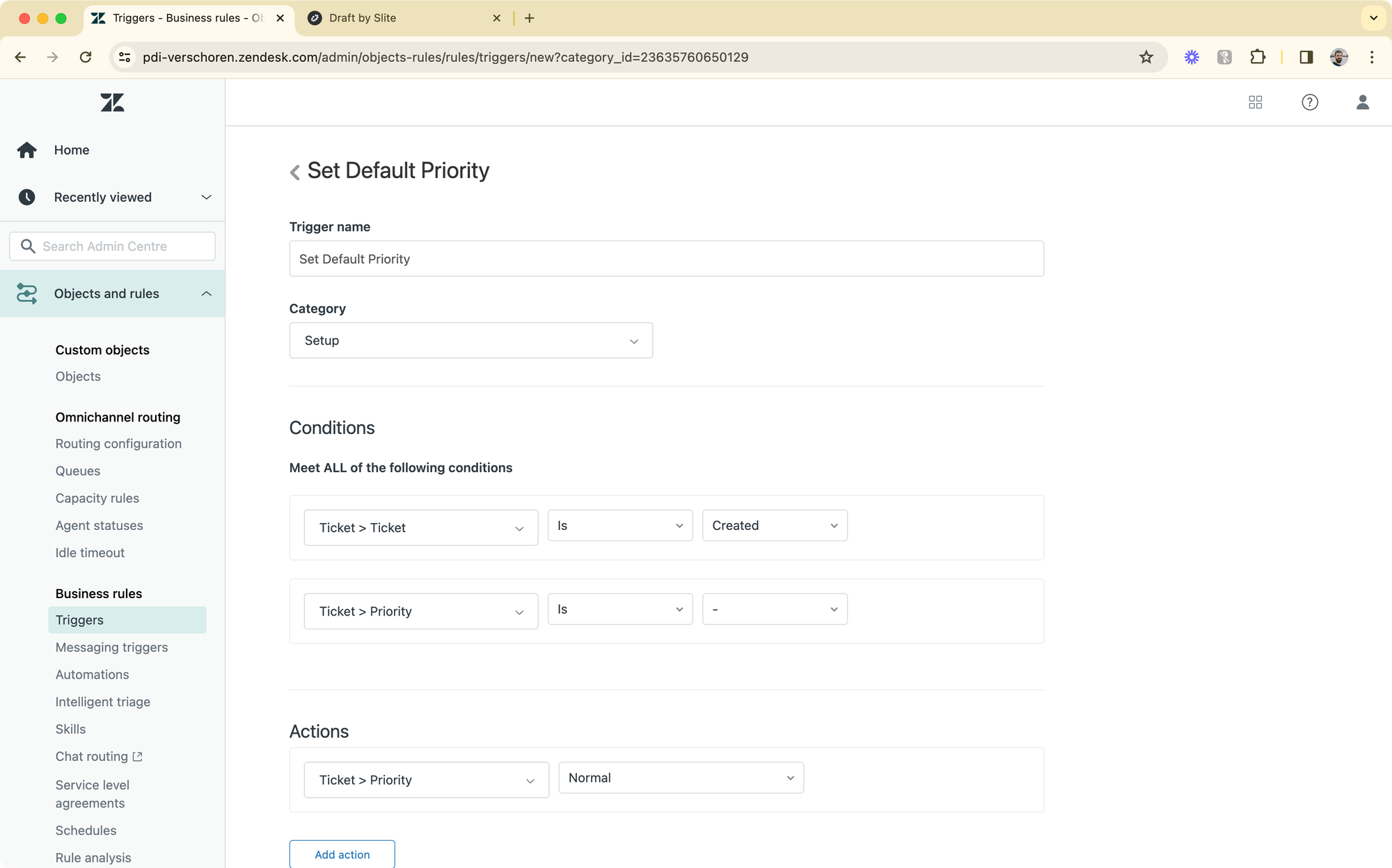 It's also best practice to set the priority of every ticket created. Ticket Priority is taken into account for the order in which tickets are routed to agents and are required for SLAs to work. So I have the habit of setting all tickets to priority Normal by default and then we can always add additional triggers to shift the priority to urgent, high or low based on specific conditions.