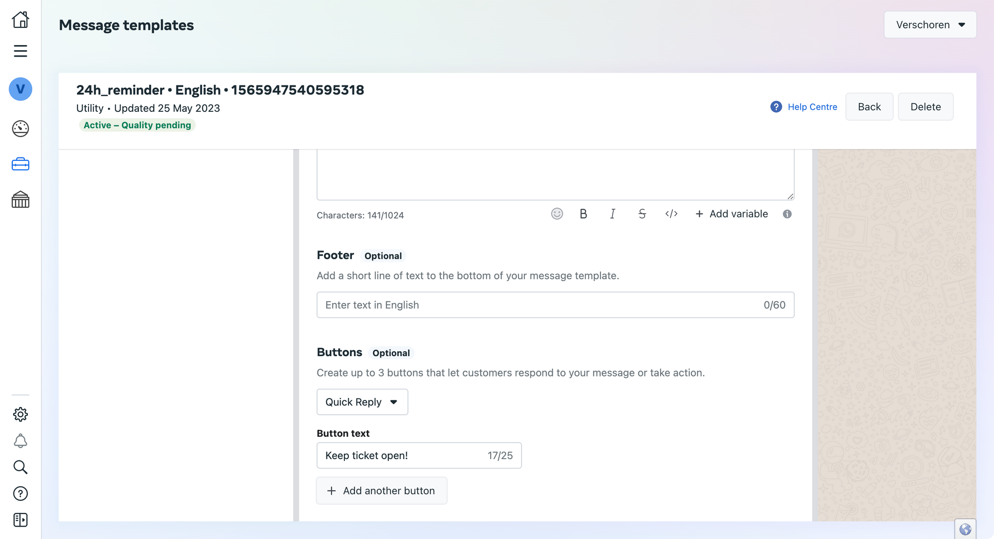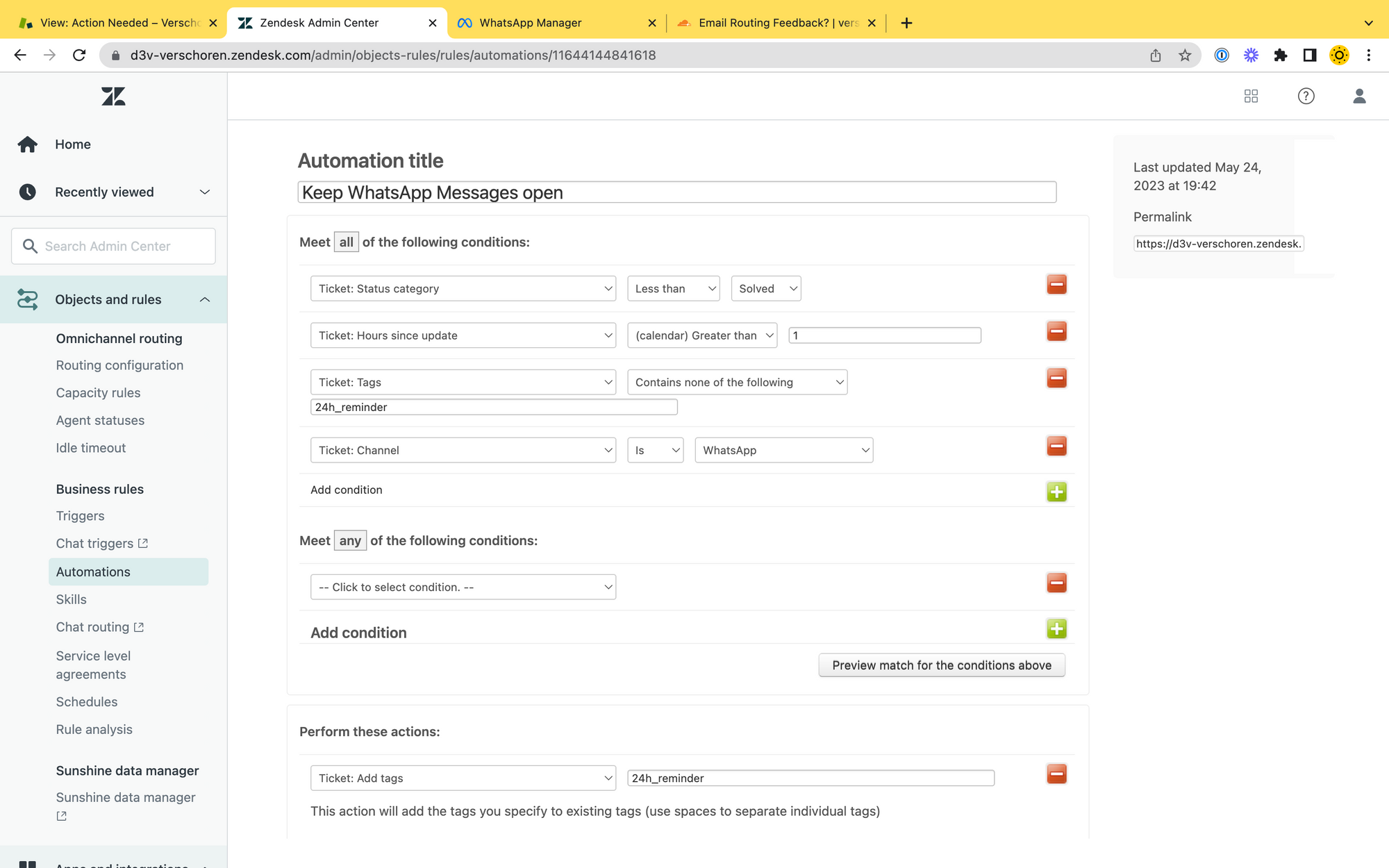 - An automation monitors the WhatsApp conversations and sends out a reminder to customers after 24 hours