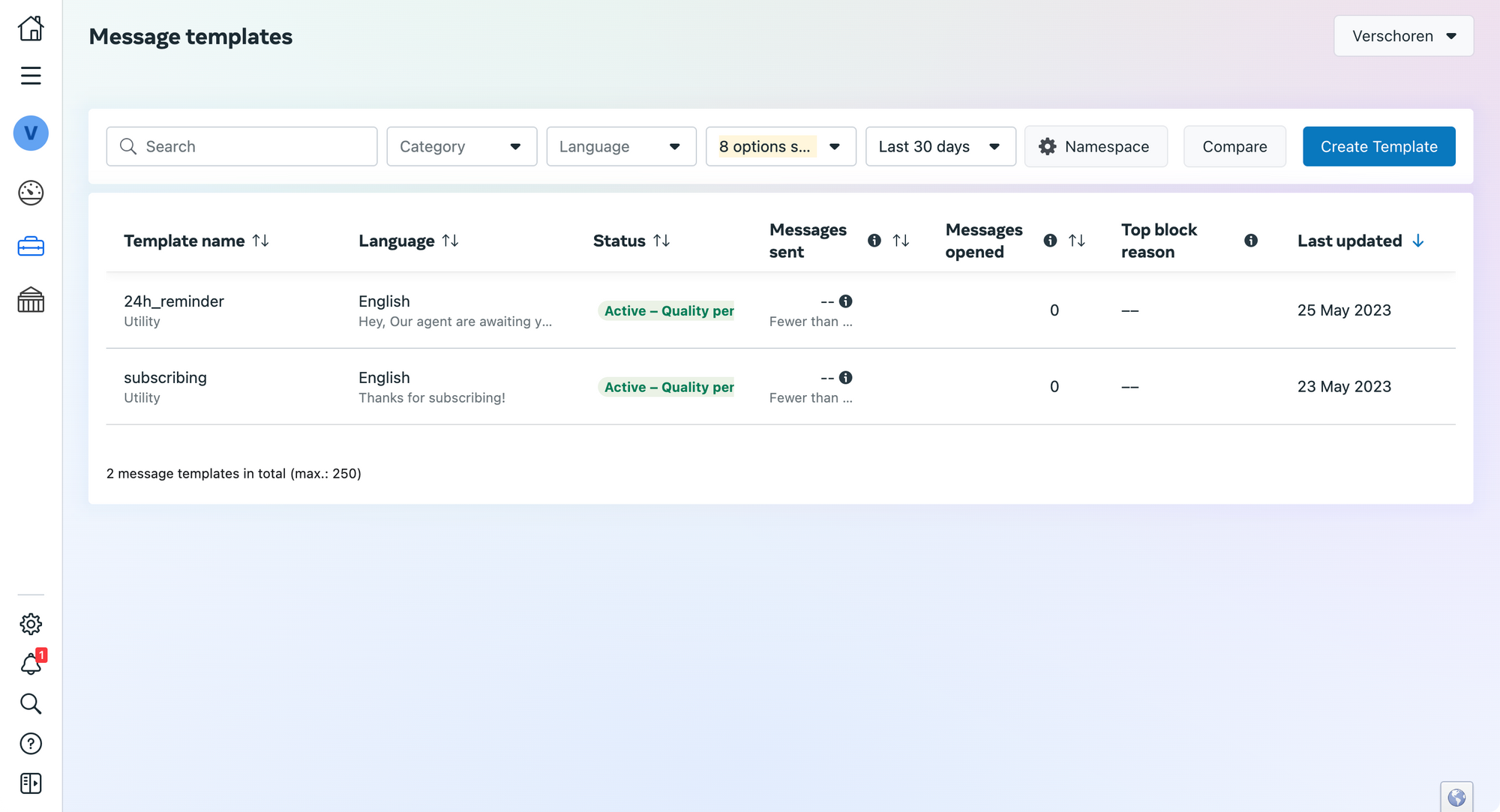 - Your templates (see later) need to be validated by Meta. This takes ~2-3 days.