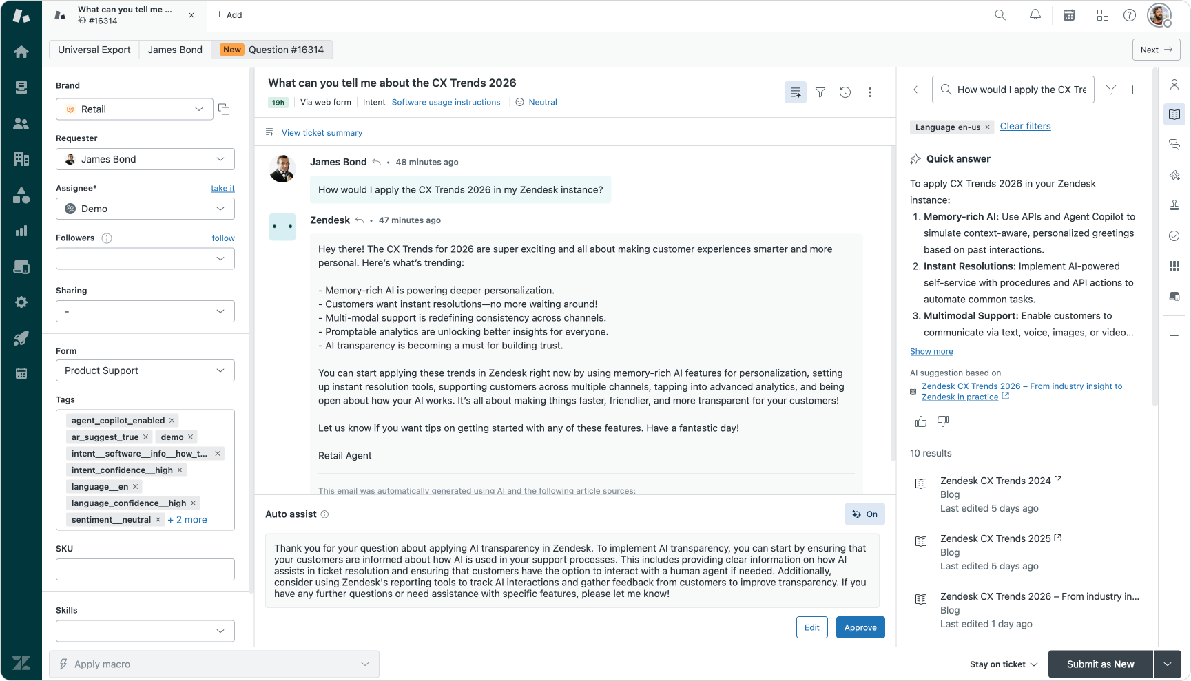 Equally important is what agents do when knowledge falls short. The Knowledge panel lets agents flag articles as outdated or incomplete without leaving their workflow, feeding updates directly back into the content cycle. Agent Copilot takes this further by suggesting replies based on your articles and procedures in auto-assist mode. Training agents to evaluate those suggestions critically, rather than accepting them uncritically, is key. A well-tuned Agent Copilot setup paired with agents who understand its outputs is significantly more effective than either working in isolation.
