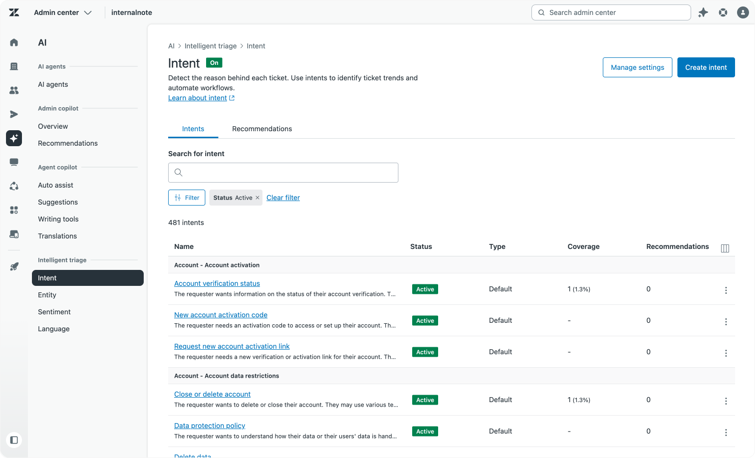 Before writing a single article, get clear on what your customers are actually asking. In Zendesk, the Intelligent Triage dashboard in Analytics is a good starting point: it shows which intents are detected most frequently across incoming tickets, giving you a data-driven picture of what drives contact volume. Cross-reference that with your macro usage, failed Help Center searches, and knowledge gap alerts surfaced by Agent Copilot. Together these signals tell you not just what customers ask, but where your existing knowledge is already falling short.