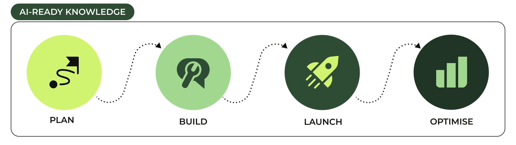 Becoming AI-ready isn't a one-time project. It's an ongoing journey of planning, building, launching, and refining your knowledge assets. Each phase feeds into the next, forming a learning loop that helps your organisation adapt alongside your customers and your AI capabilities.