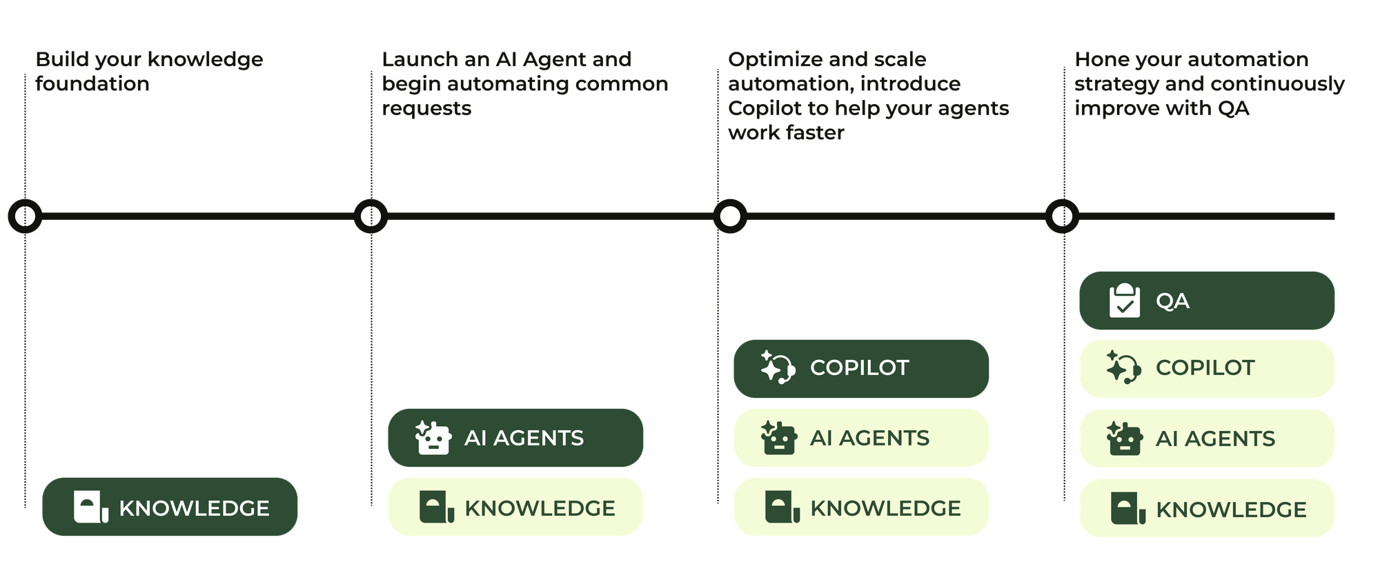 Within Zendesk's AI Maturity Framework, knowledge is the essential starting point. Moving from basic automation through agent assistance to fully autonomous AI Agents all depends on having knowledge that is robust, well-organised, and current.