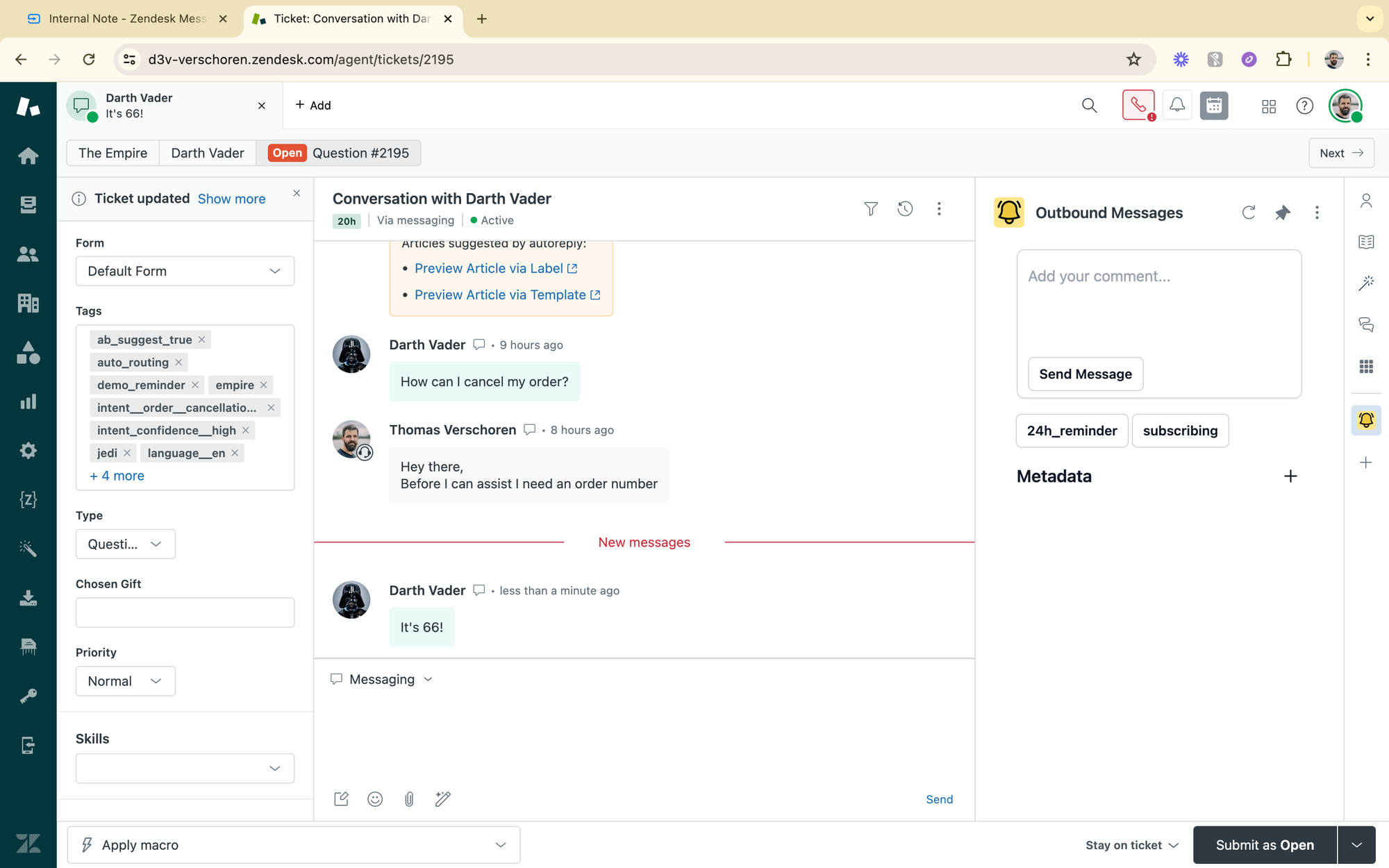 This works great for email based tickets like those submitted via email, web forms or API. But when it comes to Messaging tickets via the Web Widget or WhatsApp we run into a few issues.