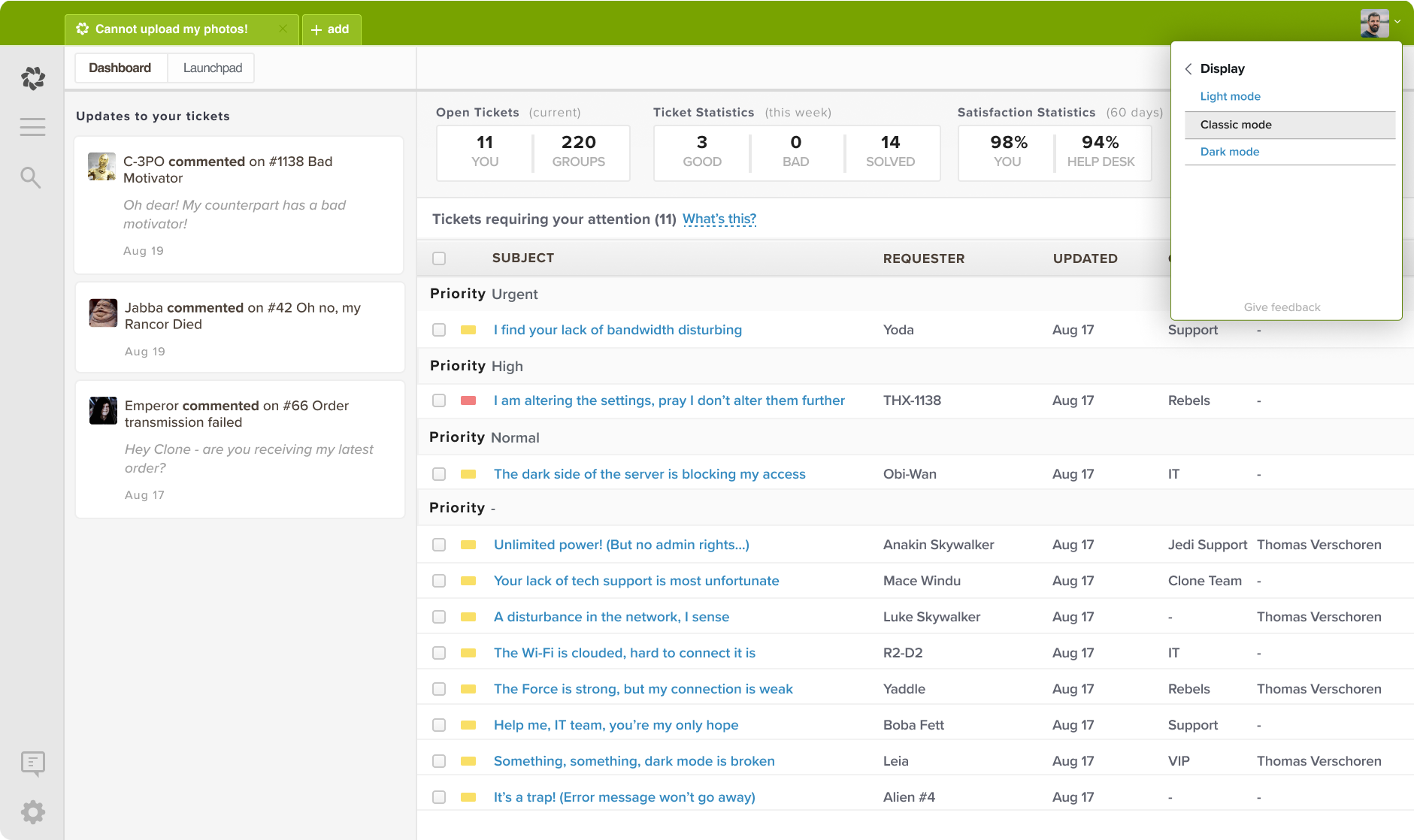 Classic mode for Zendesk