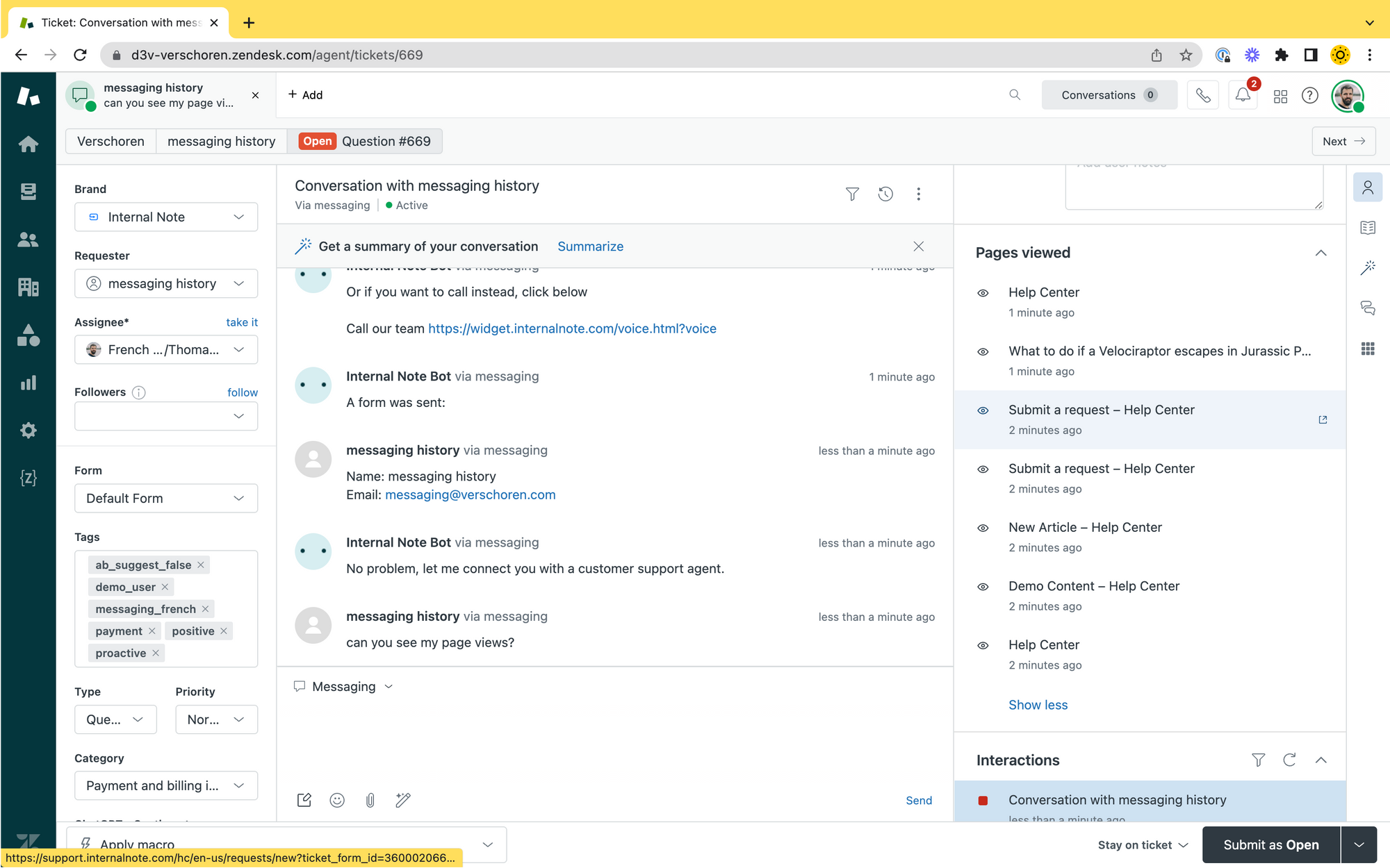 Similarly let's say that same customer started the conversation and the Zendesk Bot proposed a few articles. They read the articles, maybe mark a few of them as "did not help", and then reach out to an agent. The worst experience we can offer the customer is having the agent send them those same articles again. So if we can make the list of read/shown articles visible to the agent they won't waste time sending the same information again, but can immediately dive into more complex support questions and solutions.