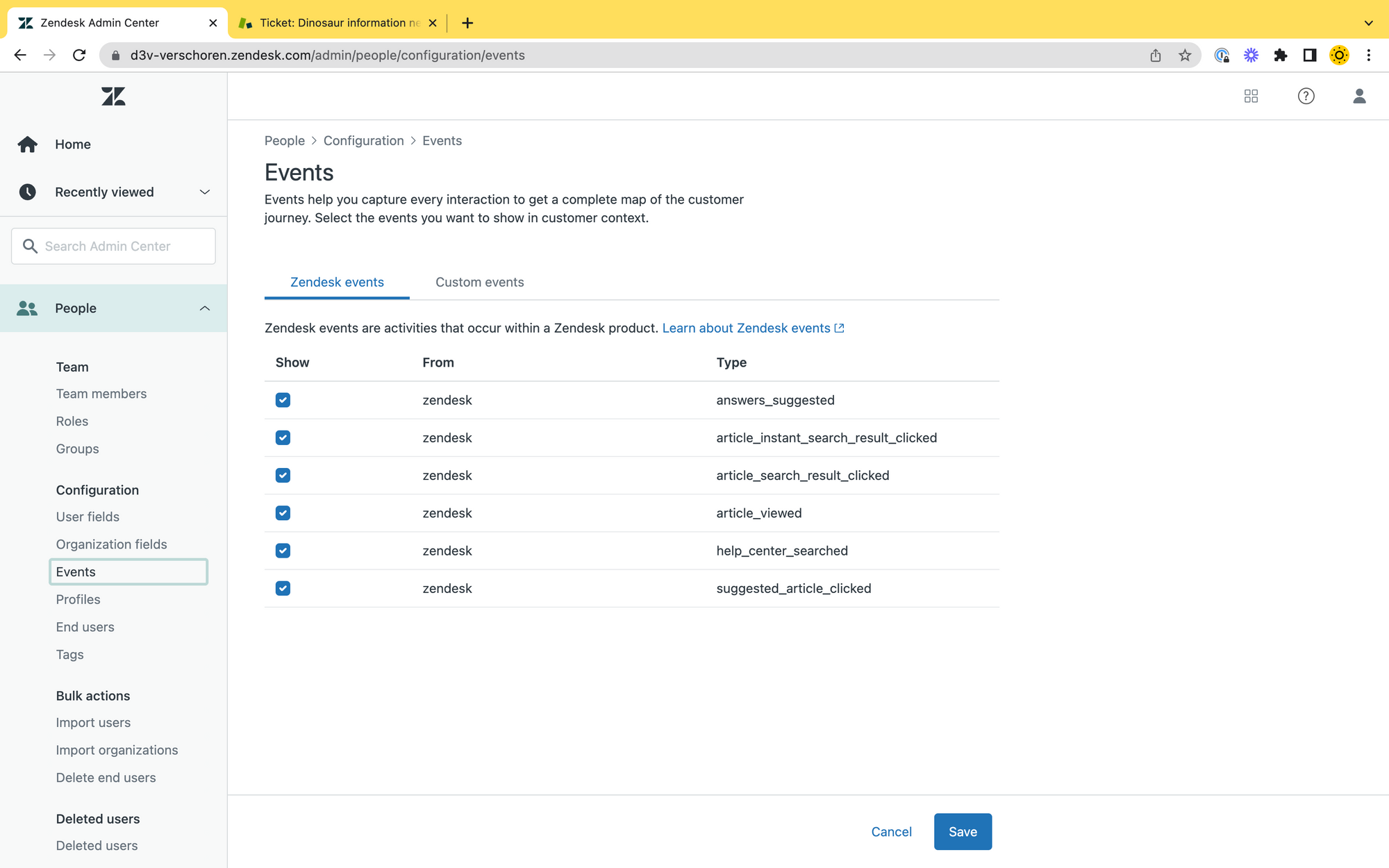 Where the previous flow focussed on actions happening outside of Zendesk, Zendesk Events are there to give agents context on what's happening inside of Zendesk.