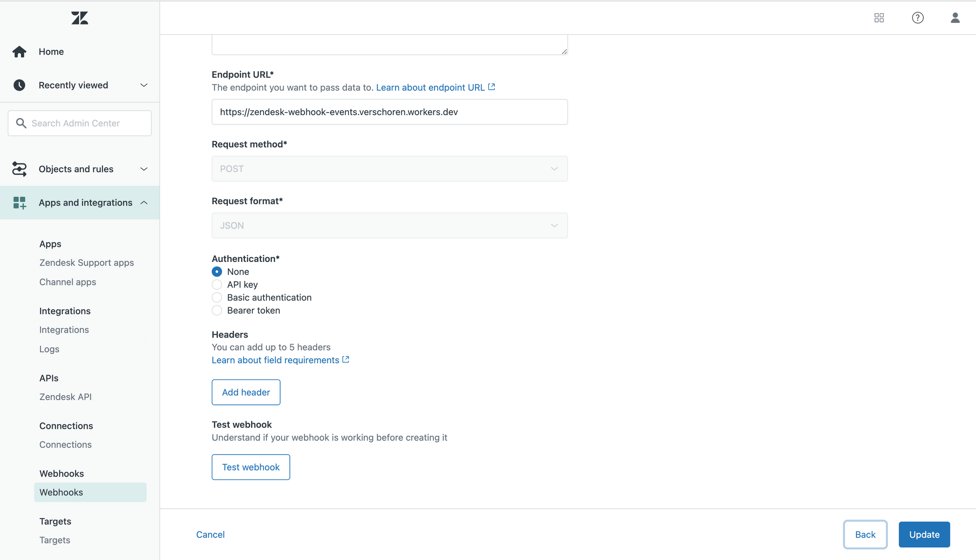 Zendesk announced Custom Headers and API Key support for its Webhooks. And fixed my previous list of shortcomings a 100%