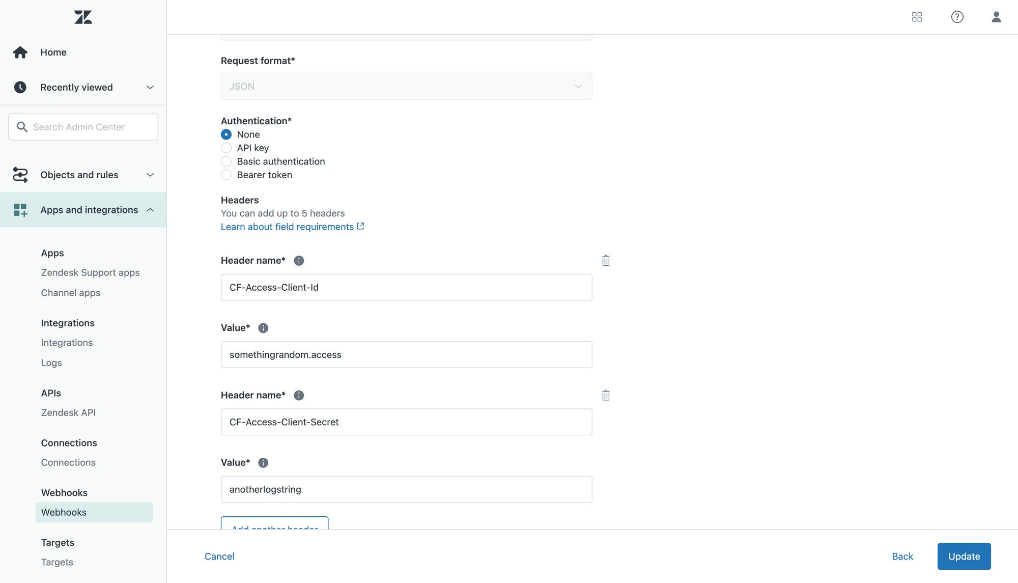 Up till now, these workers had to run "unprotected" since Zendesk was not compatible with the way Cloudflare Access works. Now, with this release, I can finally protect these workers by adding these two custom headers to my webhooks.