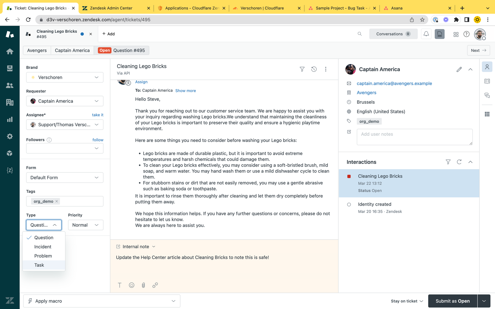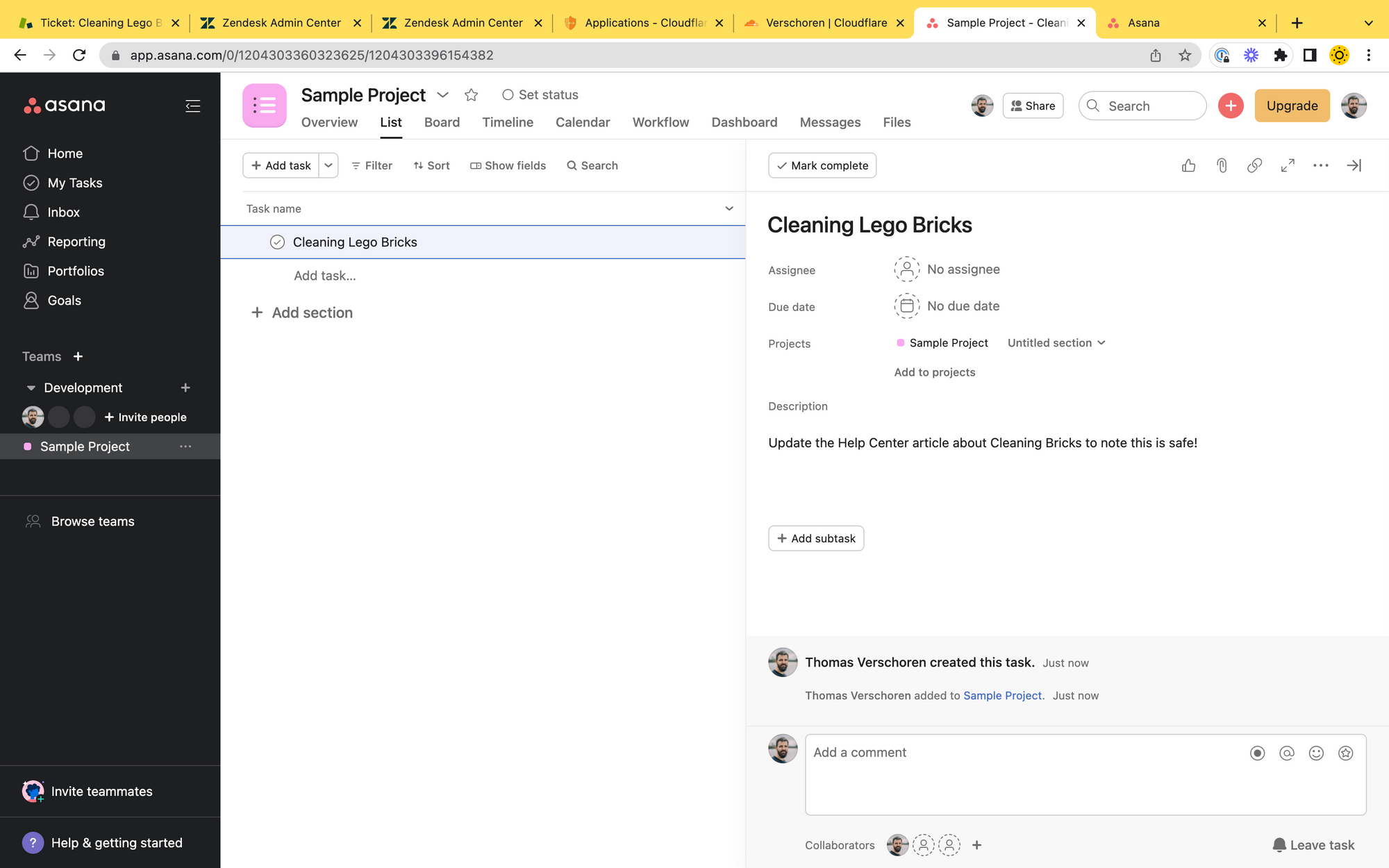 And if all goes well, each time we now change a ticket to type 'Task" a new task in Asana is created!