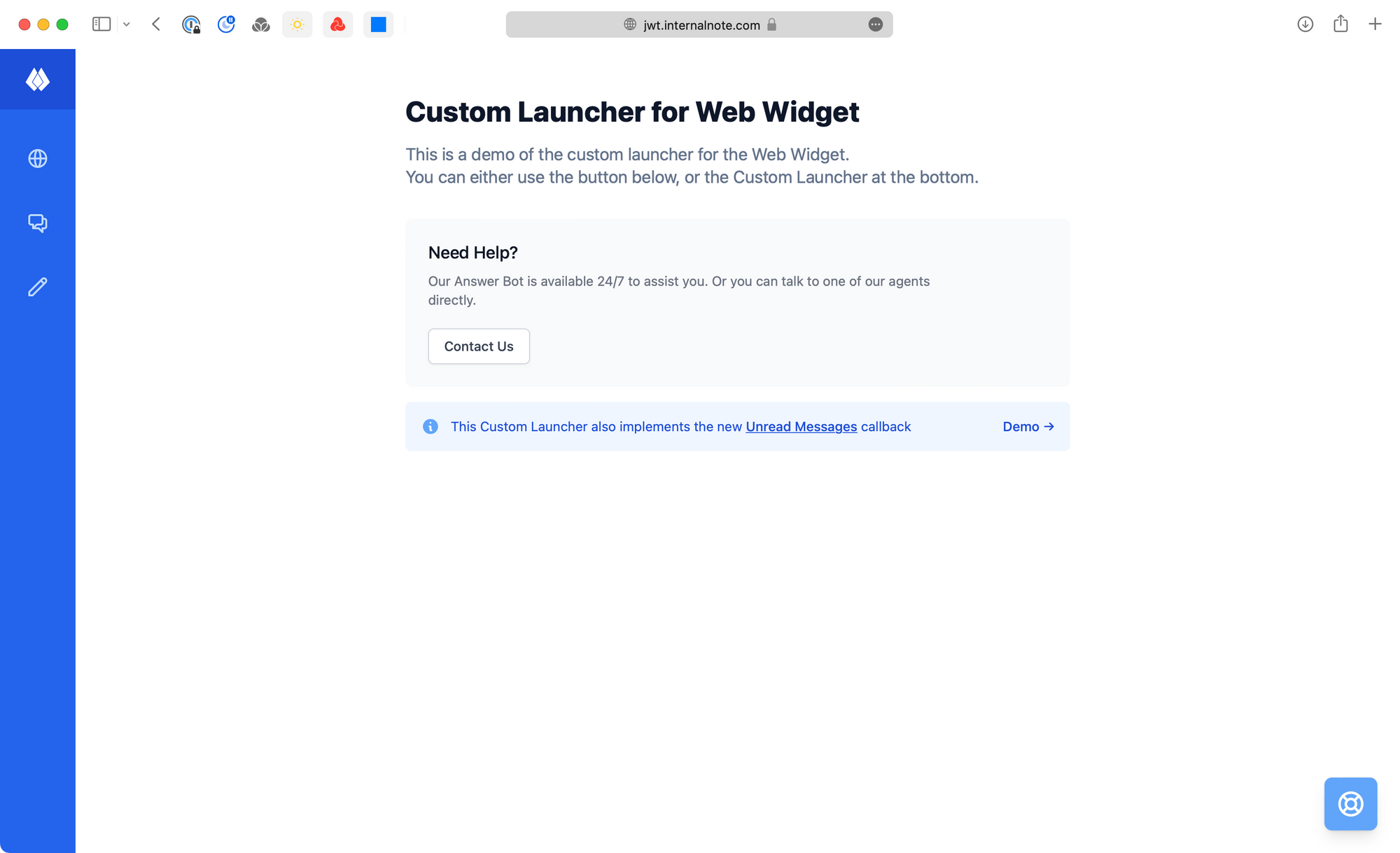 Since Zendesk also offers a function to get updates on read/unread messages, the pages also contains a demo of this feature.
