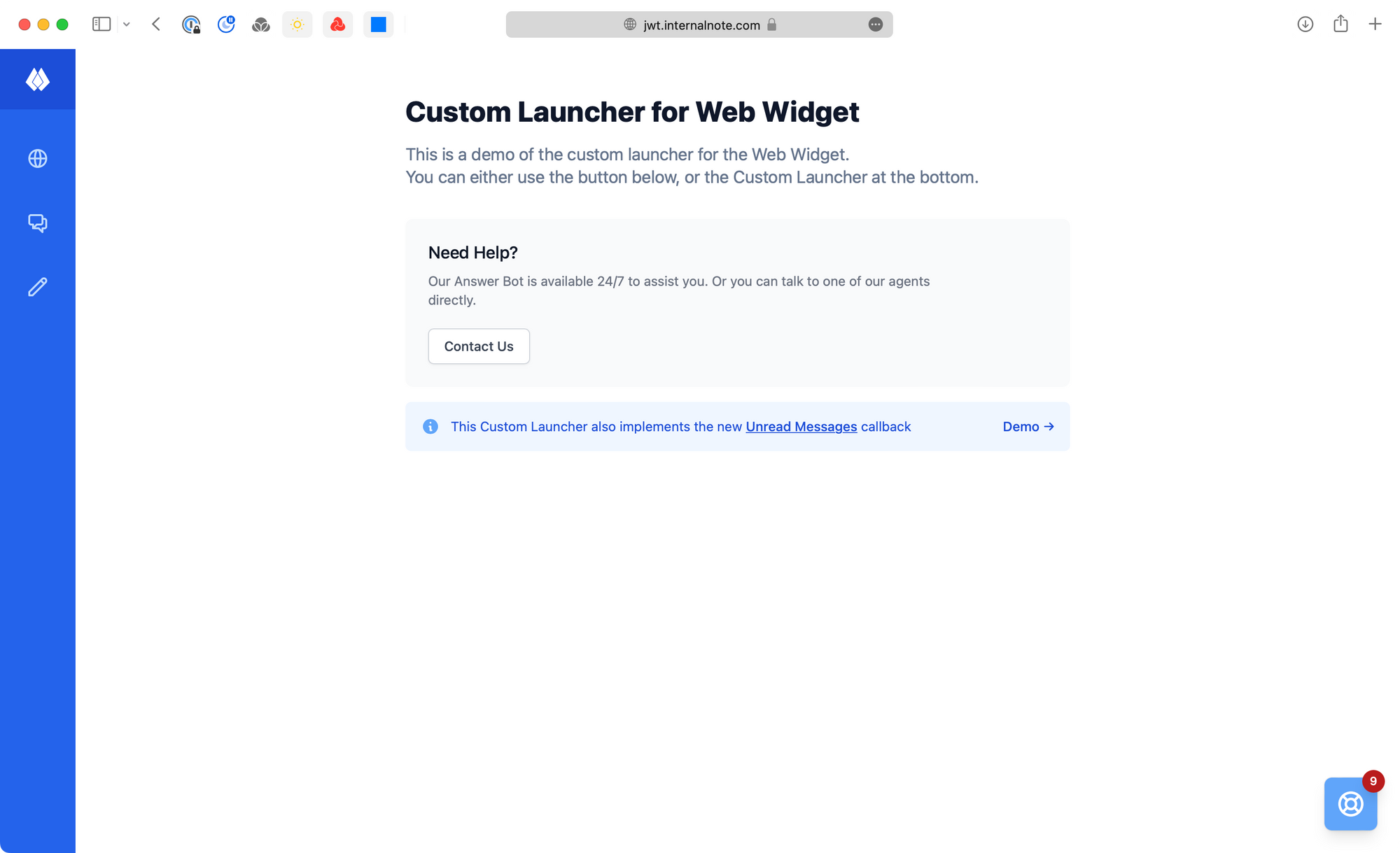 Alternatively, by pressing the Demo → button , the Launcher Button will display a hardcoded demo of 9 unread messages.