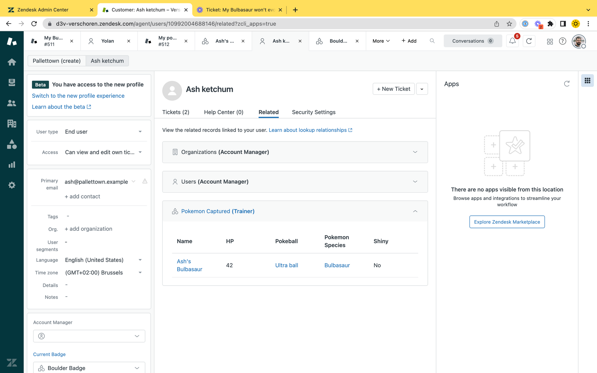 If I already did the work of browsing the objects and finding the right Pokemon, a button to create a new ticket for this record would be handy.