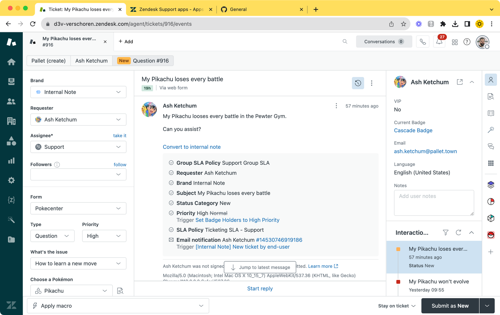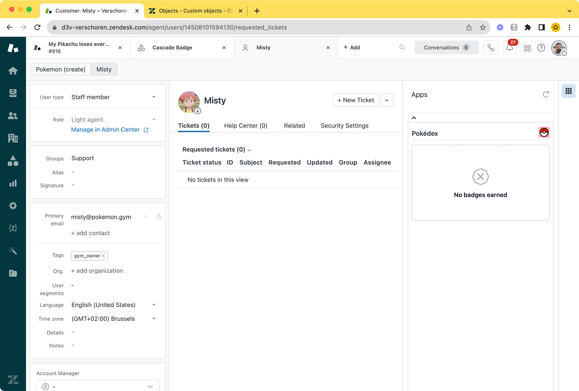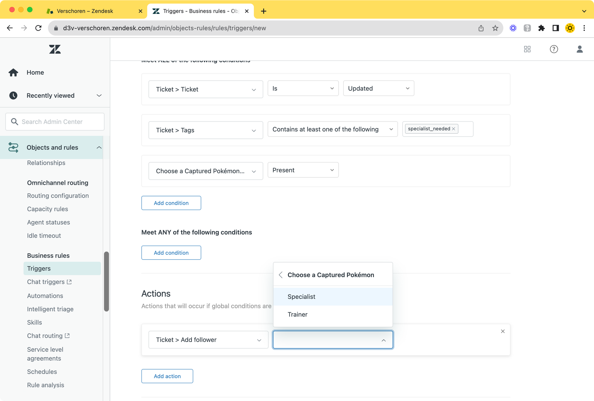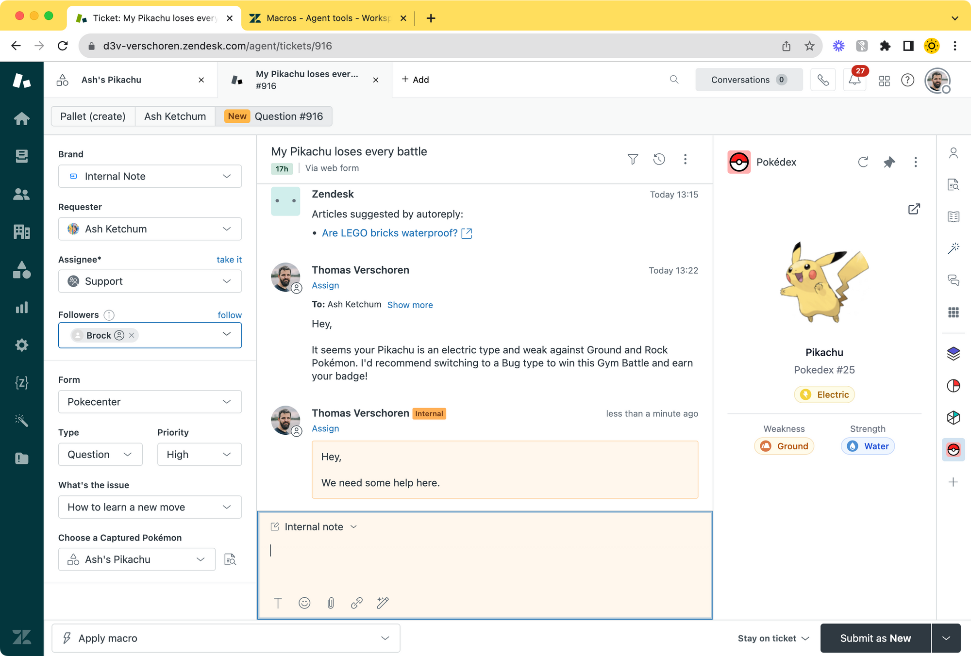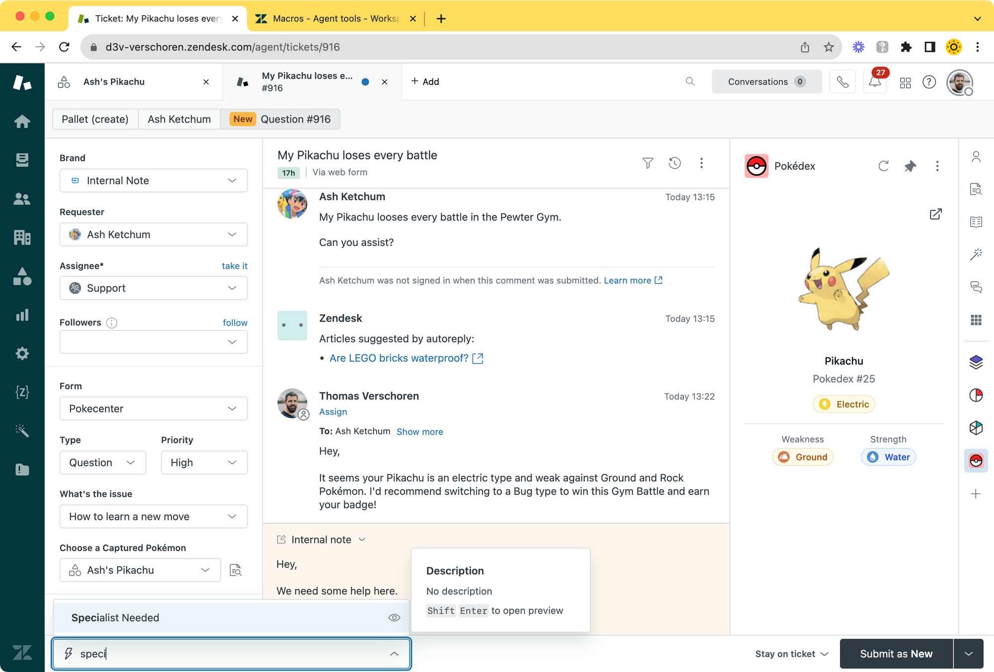 Whenever we now add the tag specialist_needed to the ticket (e.g via a macro) we'll add the Specialist linked to that specific Pokémon as a Follower to the ticket.