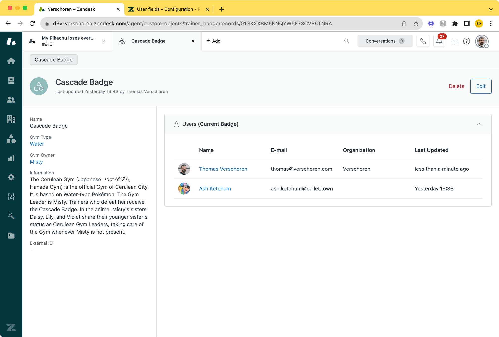 We can also add a lookup field to a user profile in Zendesk that links a badge to a user. Each user in Zendesk can have one badge linked. But the same badge can be linked to multiple users.