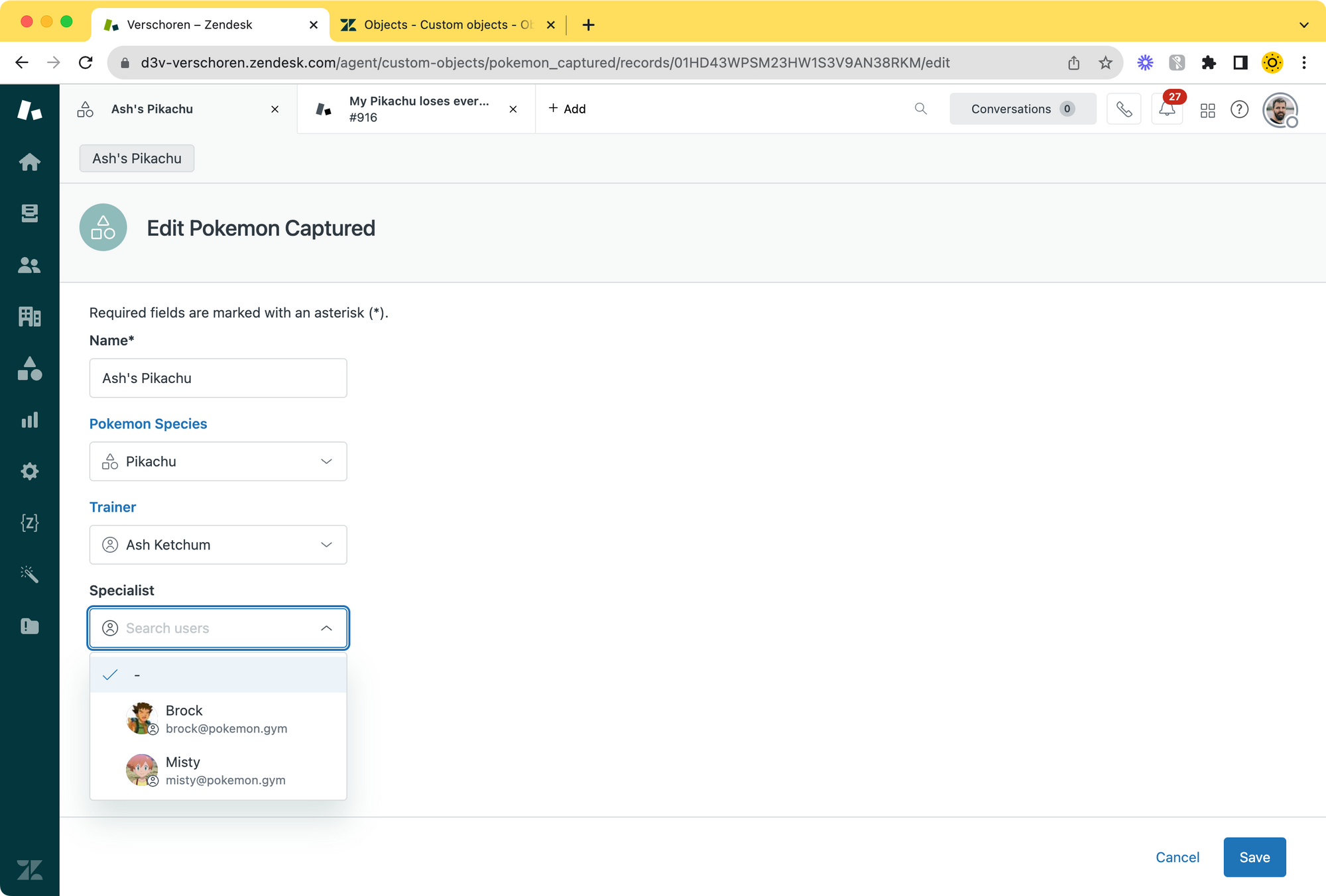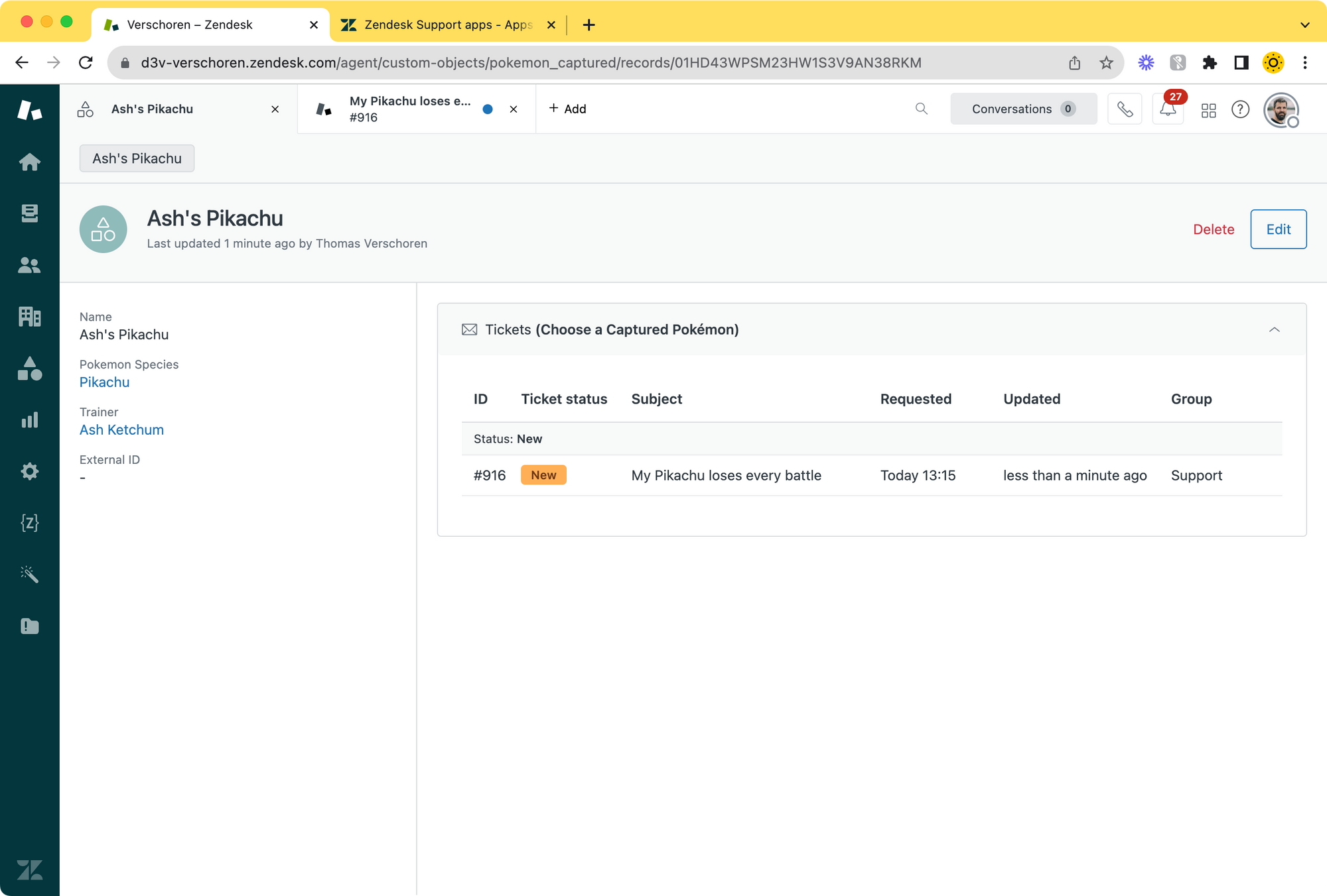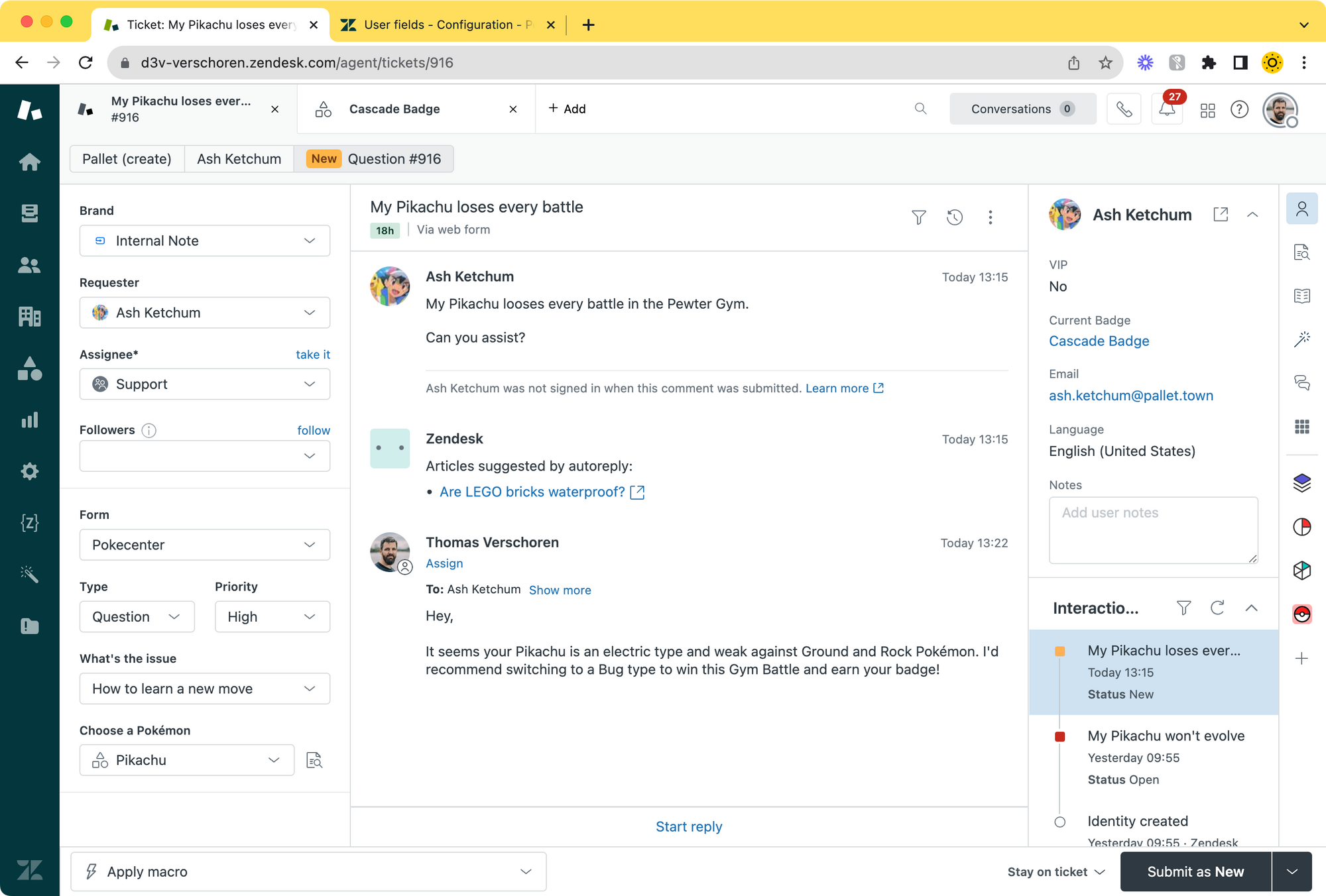Now your agents can link tickets to a specific Pokémon, instead of the generic species.