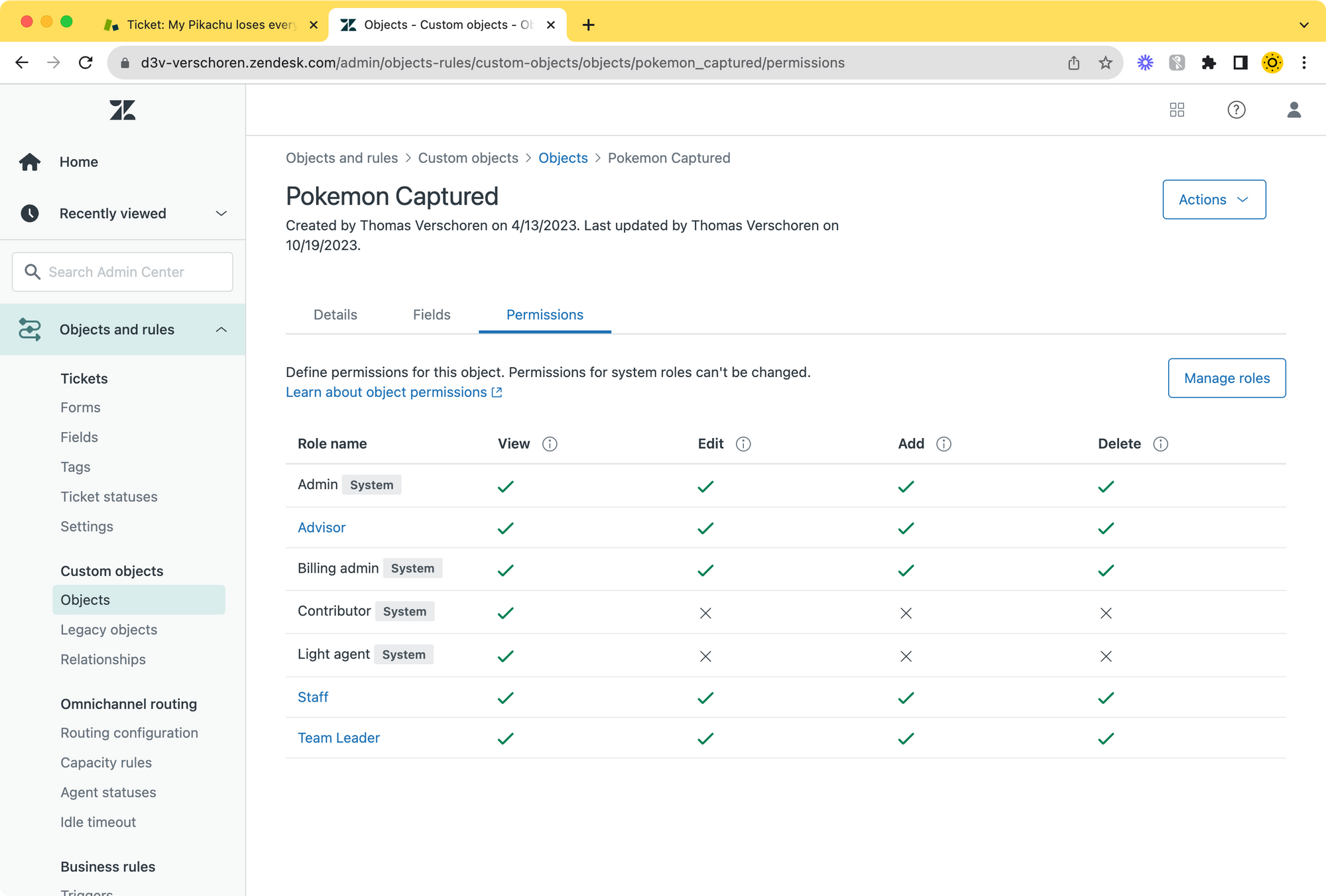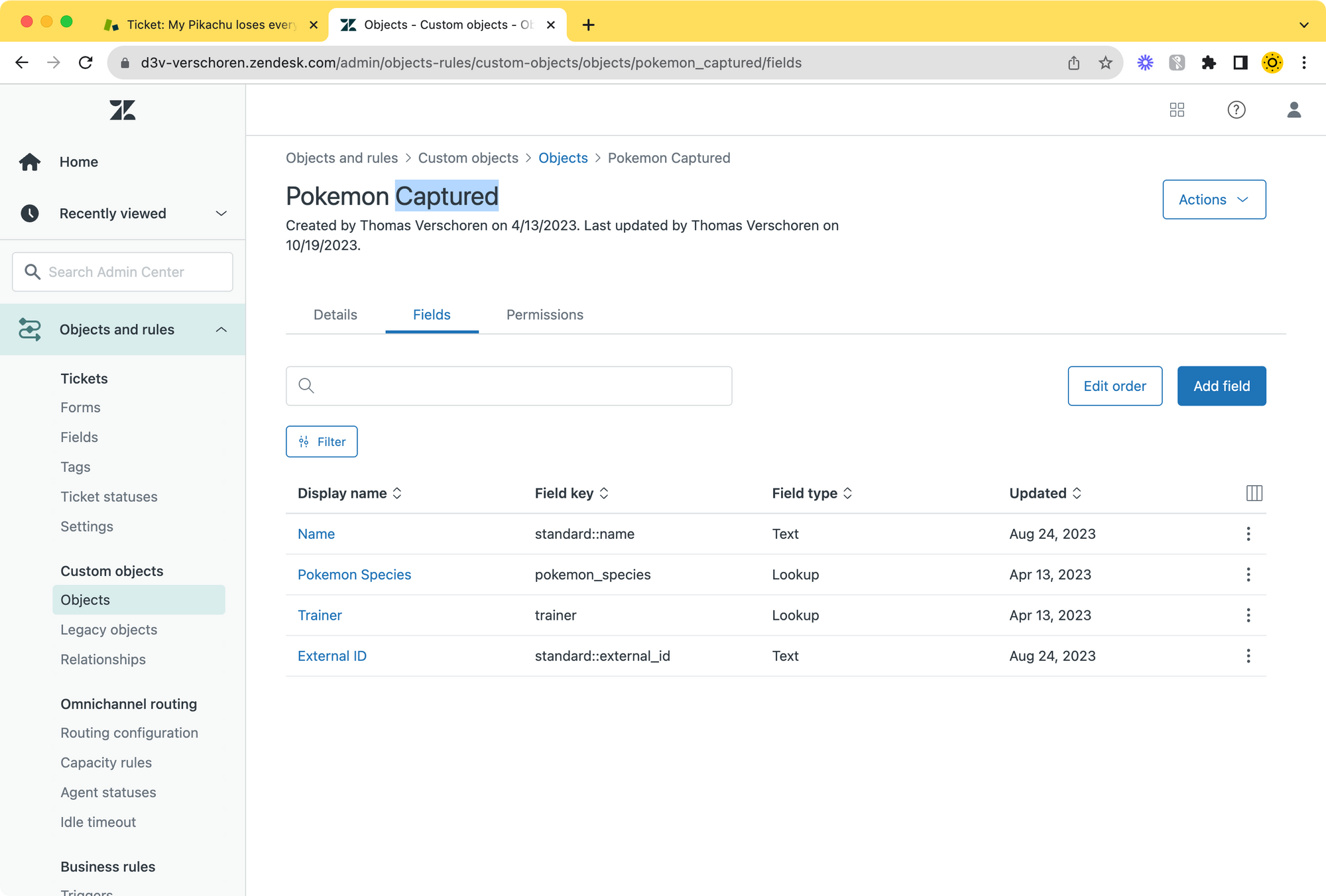 So far in this tutorial we've linked predefined objects to users and tickets. But there are use cases we're objects have a specific type, and exist multiple times. Think multiple copies of a specific laptop, or versions of a software license, or in our cases: the different between a Pokémon species and a specific captured specimen.