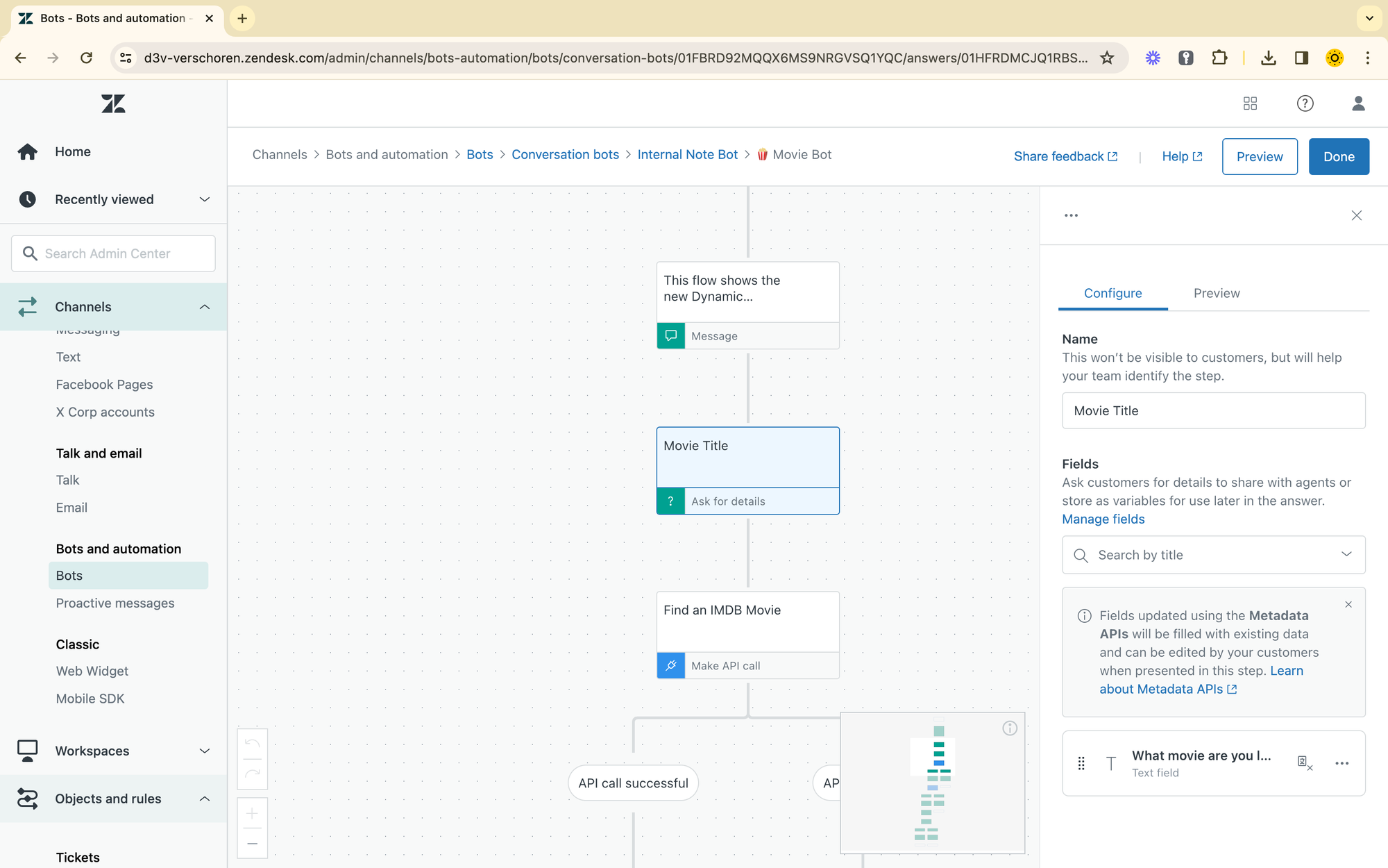 We're going to build a Zendesk Bot that will first ask the customer for a movie title.