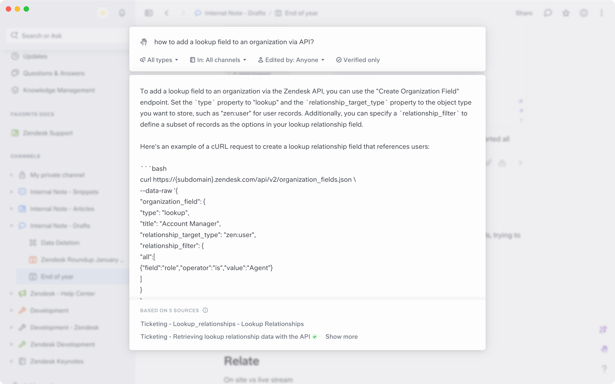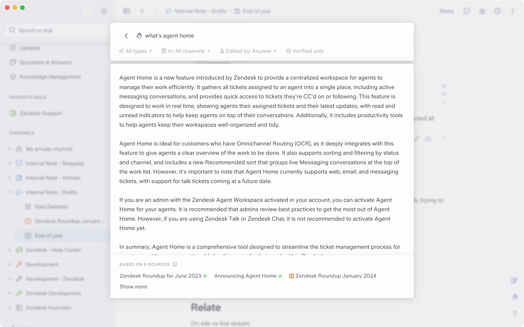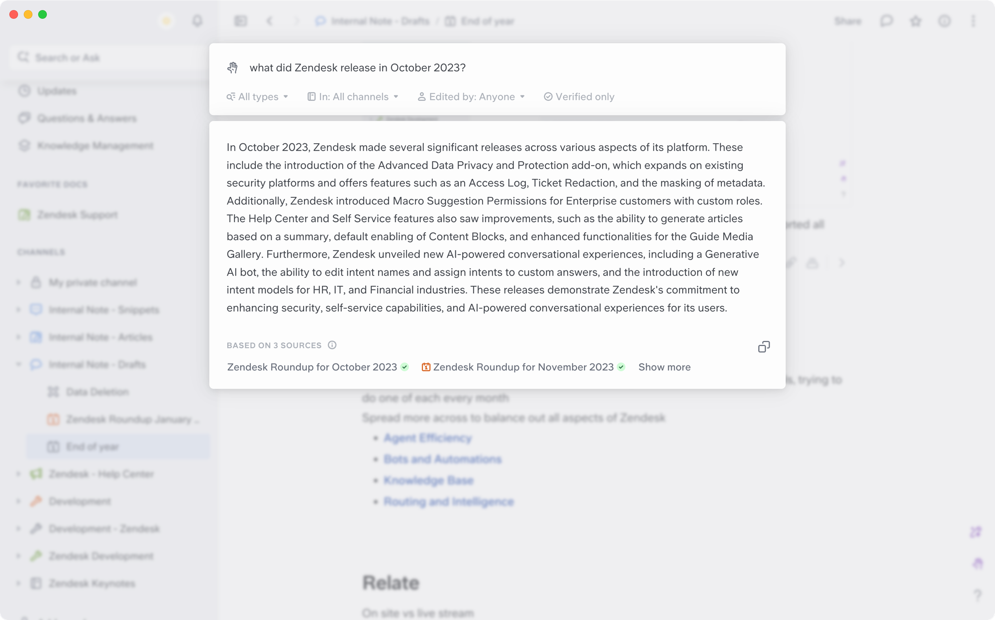 So questions like "What's Agent Home", "How to add lookup fields via API?" or "What did Zendesk release in October 2023" are now very easy to answer.