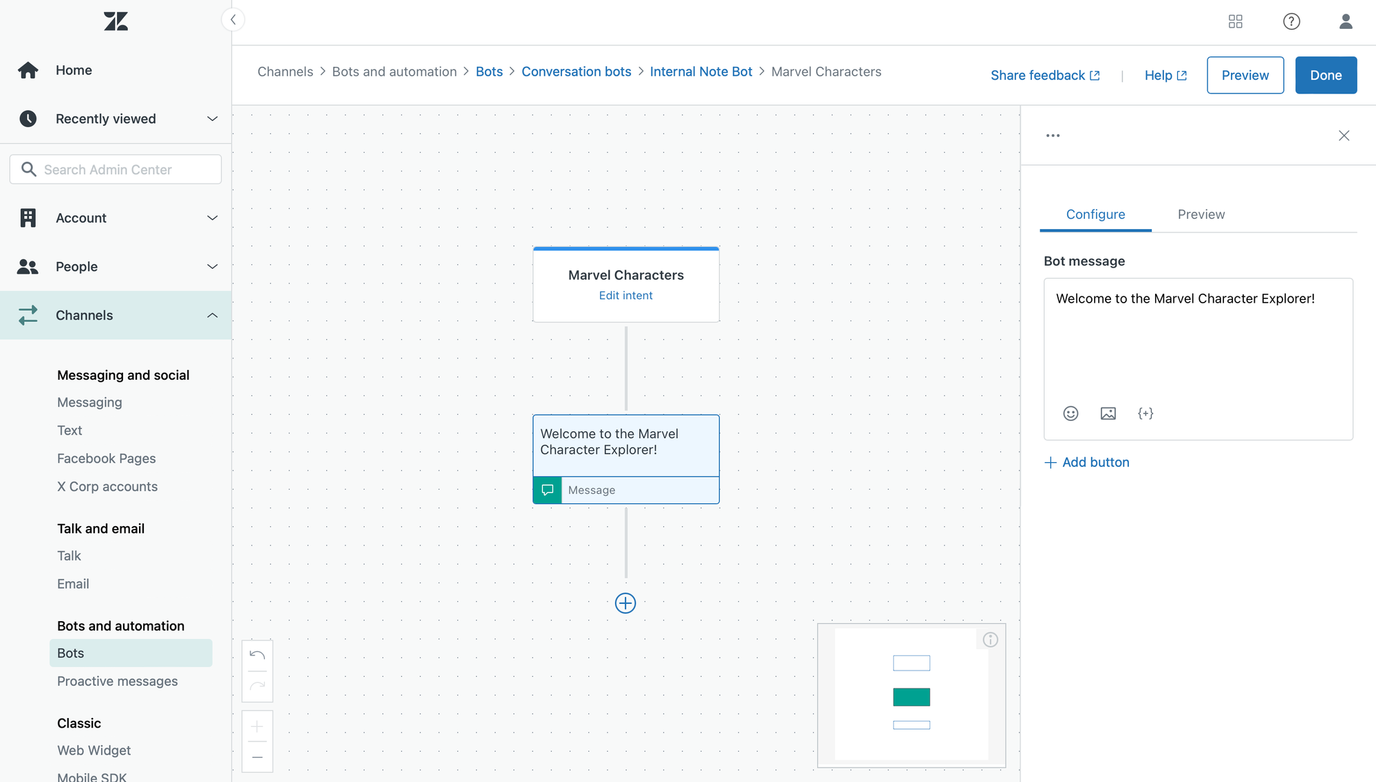 All new flows start with the creation of a new answer for your bot. I decided to call this one Marvel characters and started with a short intro via a Bot Message.