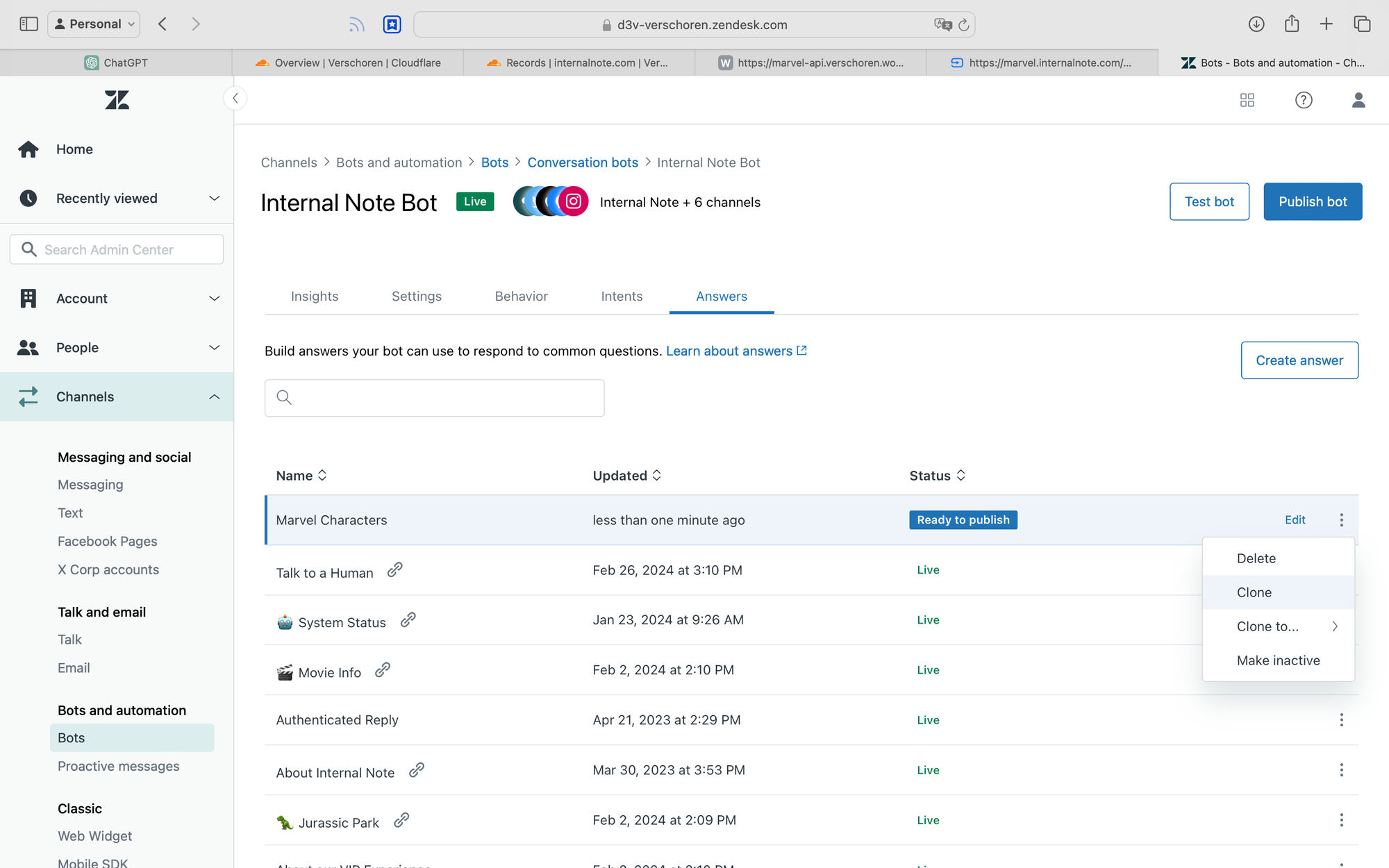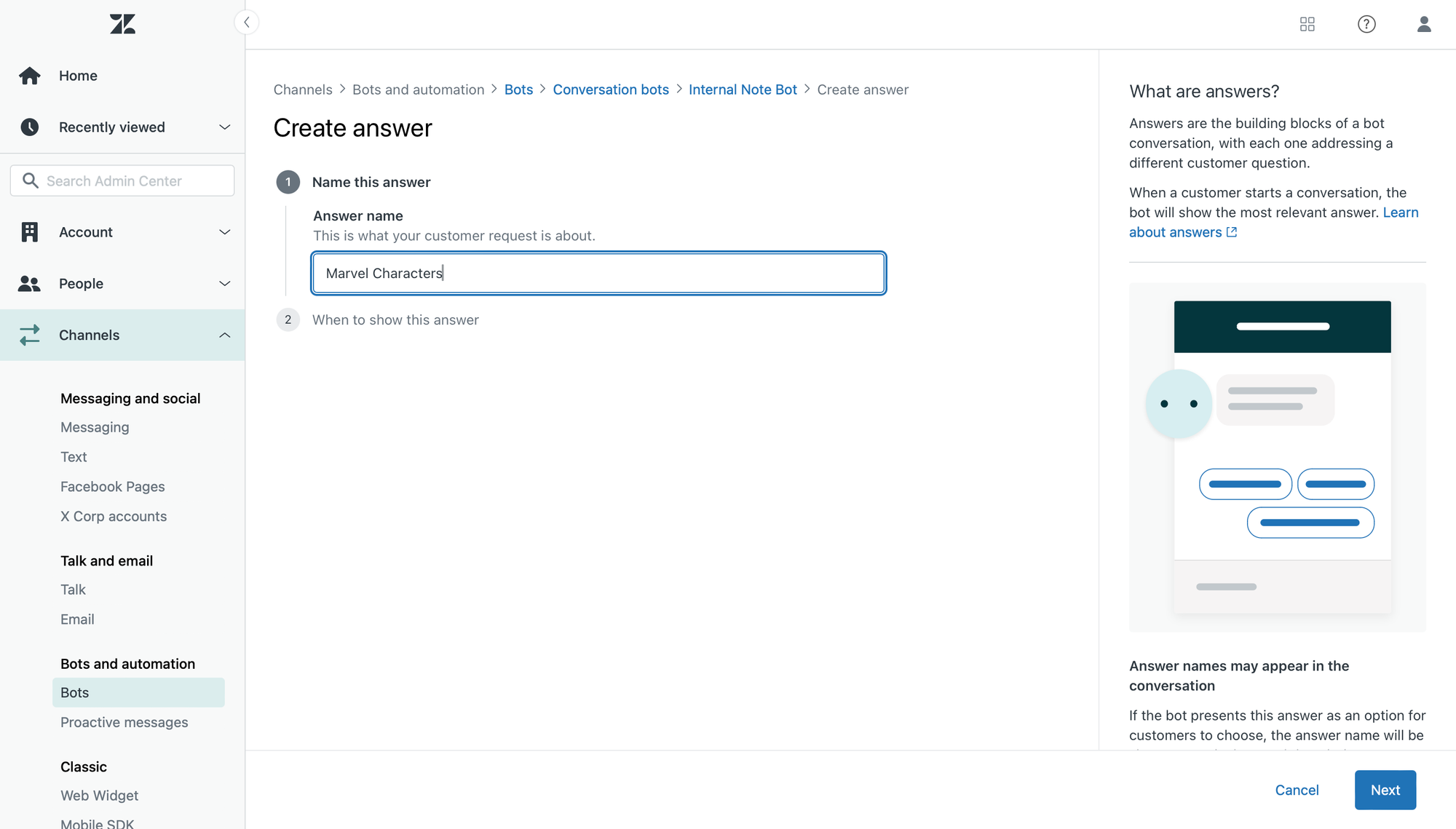 Create a new bot answer
