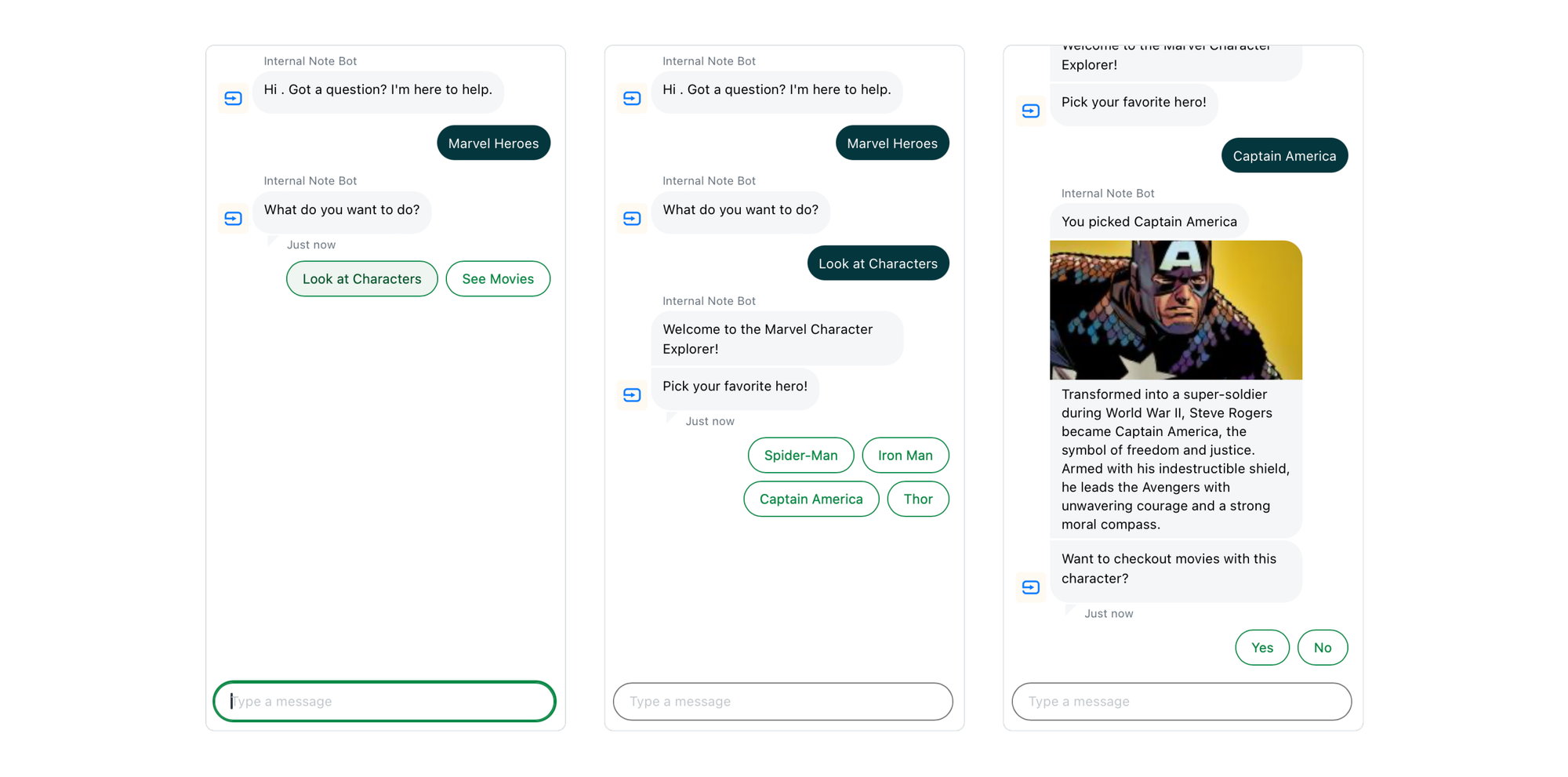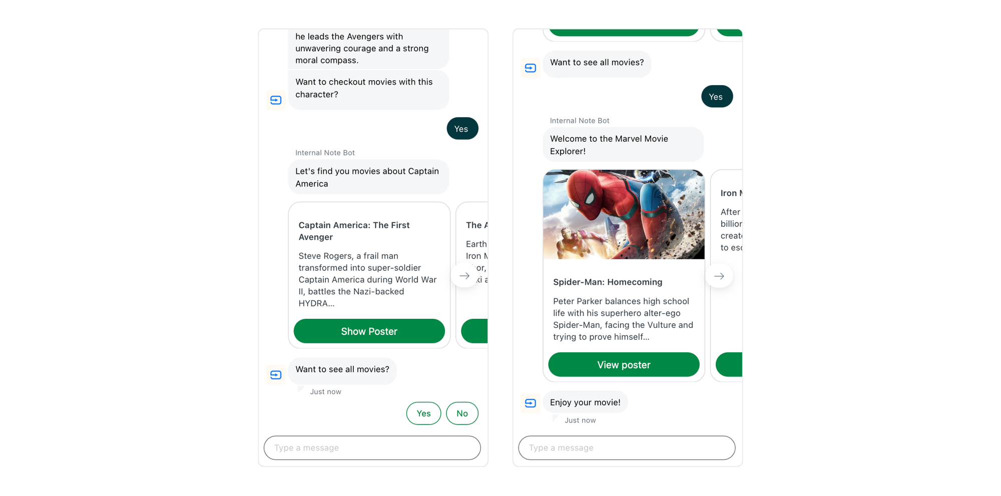 - We'll then offer the option to show movies that feature that character, and if the answer is yes, we'll link to a new answer flow.