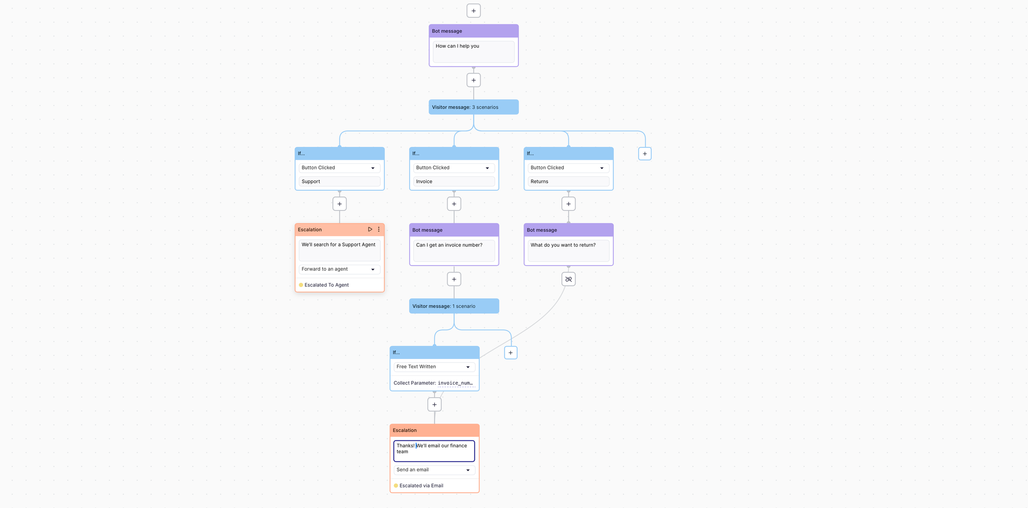 - Add a final Post Message step to wrap up the conversation.