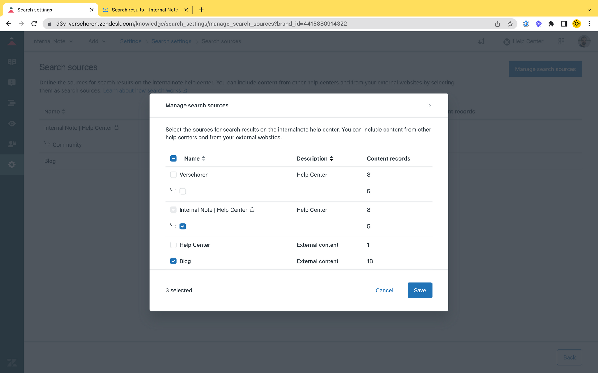<meta name='zd-site-verification' ...>to<head> - Add a Content Source Name (e.g. Website) and Type (e.g. Article) for the indexed items. These show up in the search sidebar.